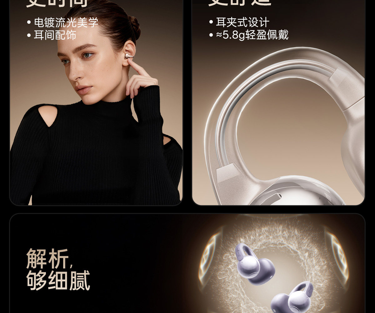 Edifier Auro Clip Ear Clip-On Headphones Bluetooth Wireless Non-In-Ear Call Noise Reduction Sports Gaming Waterproof