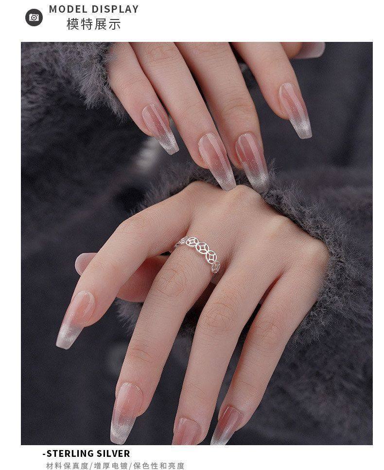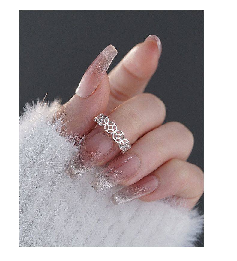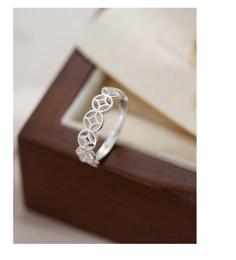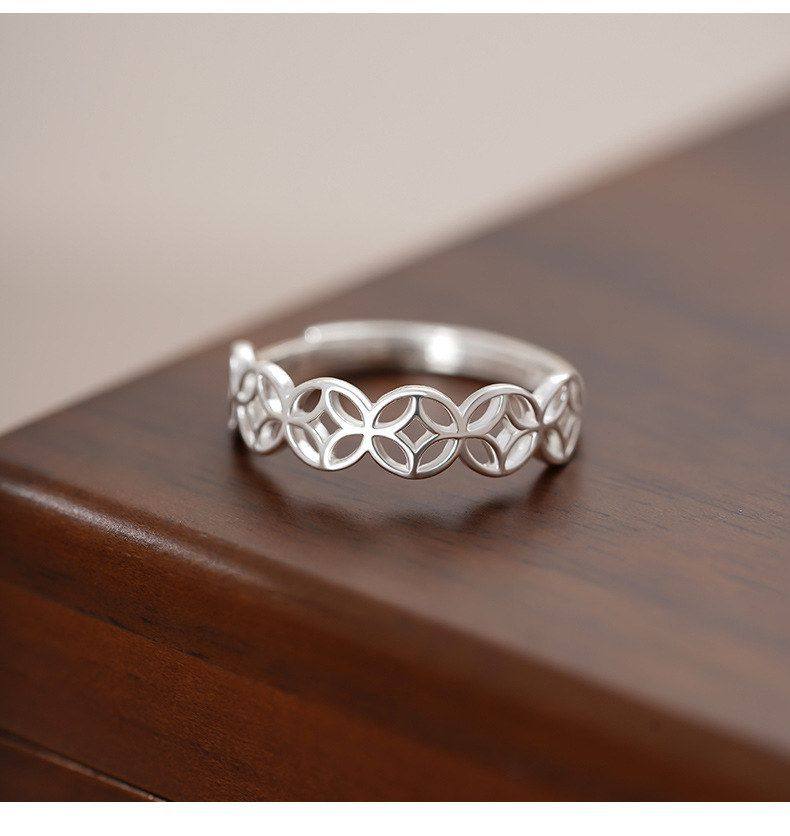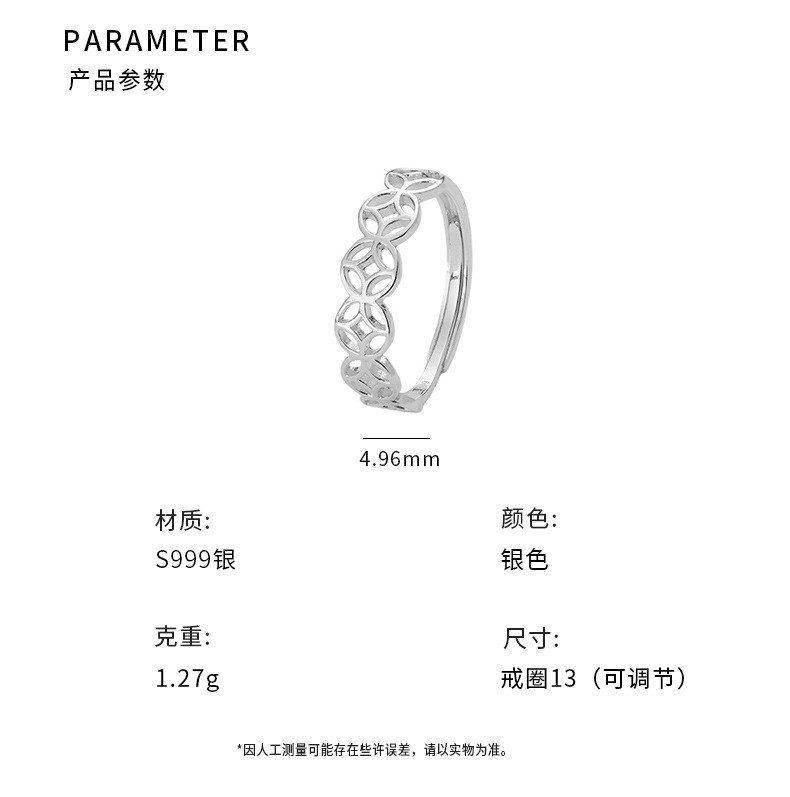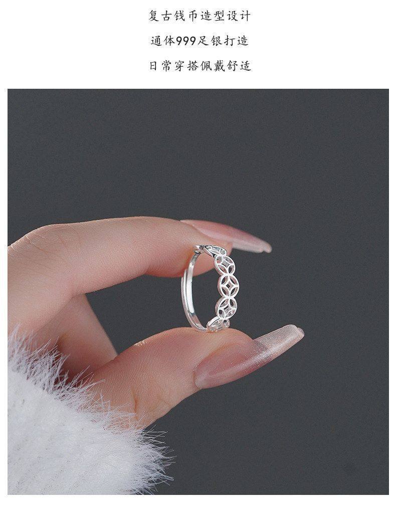 S999 Pure Silver Coin Ring for Women, New Chinese Style, Unique Niche Design, Artistic Style, Open Ring, Wholesale