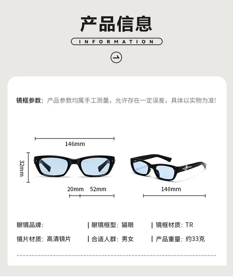 | Color Classification | [Same Style as Wang Anyu] Kant-Black Frame Blue [Anti-Uv Uv400],[Counter Quality] Kant-Black Frame Light Tea [Anti-Uv Uv400],[Counter Quality] Kant-Black Frame Black Film [Anti-Uv Uv400],[Counter Quality] Kant-Black Frame Dark Tea [Anti-Uv Uv400],[Counter Quality] Kant-Grey Frame Black Film [Anti-Uv Uv400],【Boutique Eyewear】Prescription Sunglasses 0-600 Degree 1.56 Lenses (Please Specify Prescription),【Boutique Eyewear】Prescription Sunglasses 0-800 Degrees with 1.61 Lenses (Please Specify Prescription),【Boutique Eyewear】Prescription Sunglasses 0-1000 Degrees with 1.67 Lenses (Please Specify Prescription) |