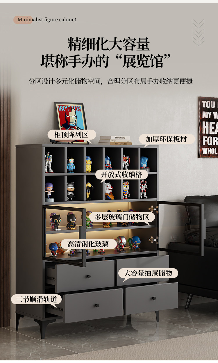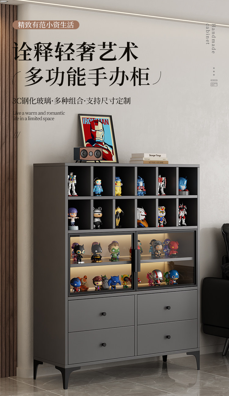 Glass Door Display Cabinet for Home Use in the Living Room, Suitable for Blind Box Toys, Lego Models, Bookcases, Wine Cabinets, and Pop Mart