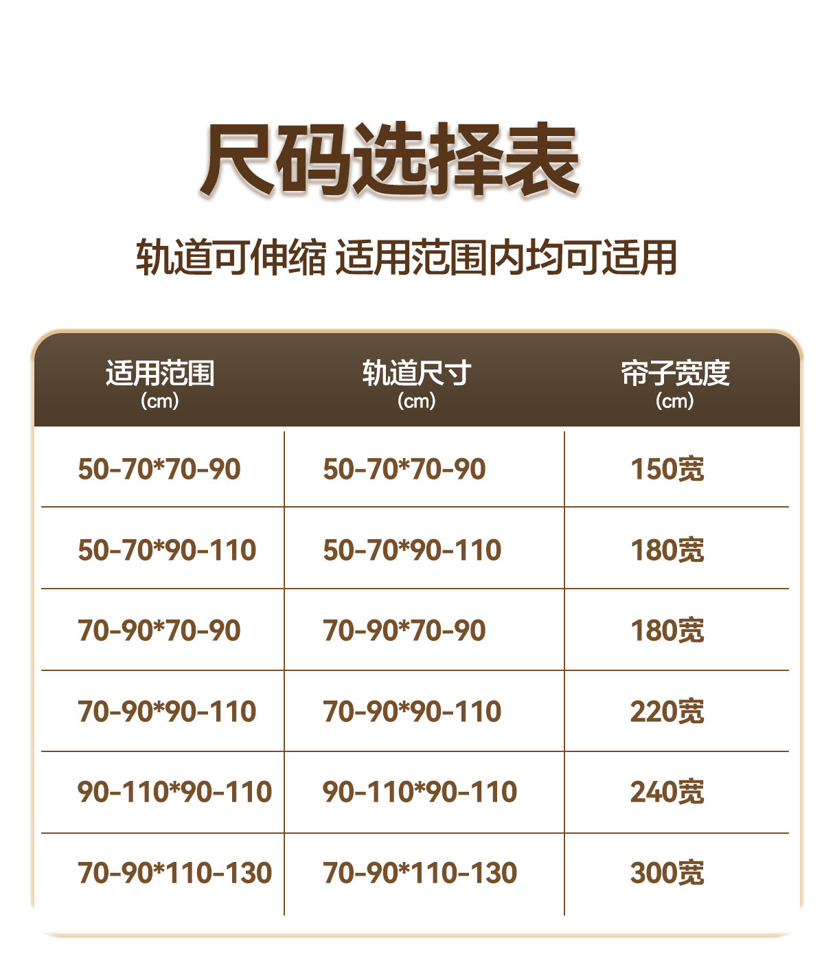 | Size | [Applicable Range 50~70*70~90] Curtain Height 200cm,[Applicable Range 50~70 * 90~110] Curtain Height 200cm,[Applicable Range 70~90*70~90] Curtain Height 200cm,[Applicable Range 70~90 * 90~110] Curtain Height 200cm,[Applicable Range 90~110*90~110] Curtain Height 200cm,【Adjustable Track, No Precise Measurement Needed】Contact Customer Service for Custom Curtain Orders |