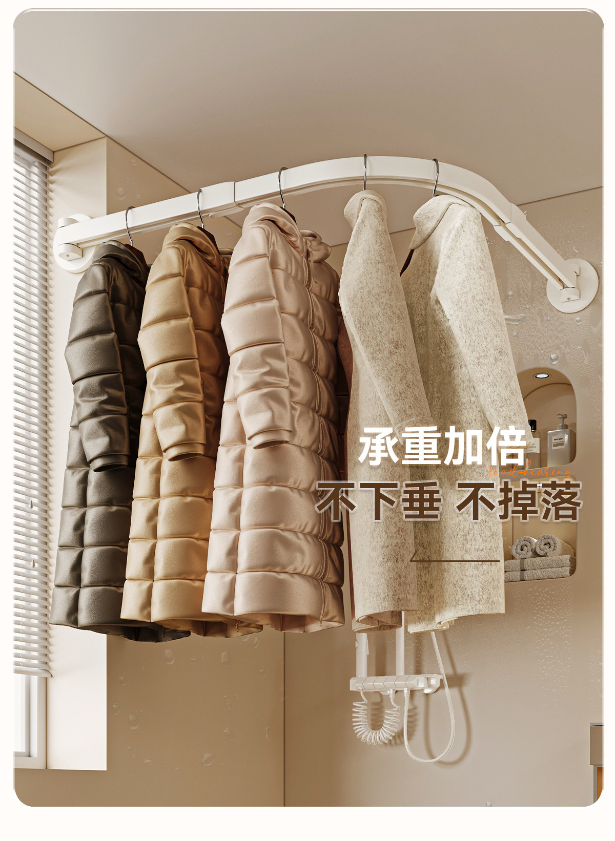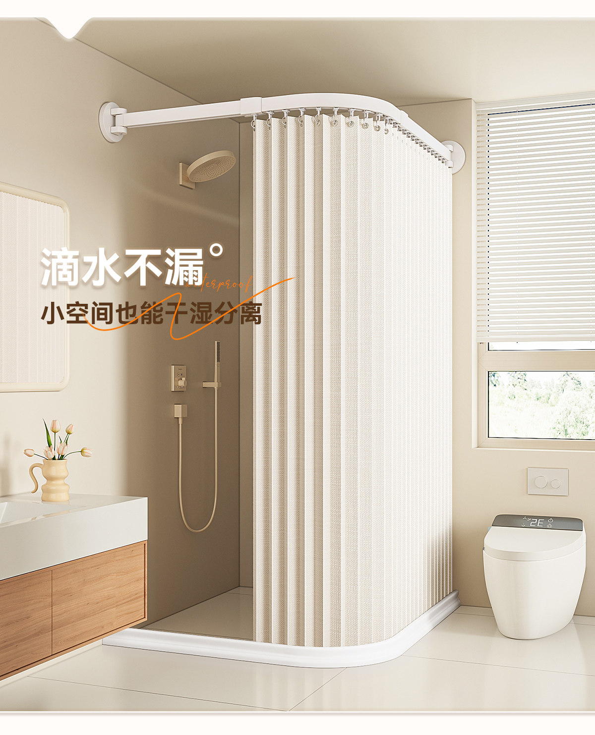 Bathroom Curved Partition Curtain Slide Rail Foldable Shower Curtain High-End Bathroom Waterproof Shower L-Shaped Shower Curtain Set