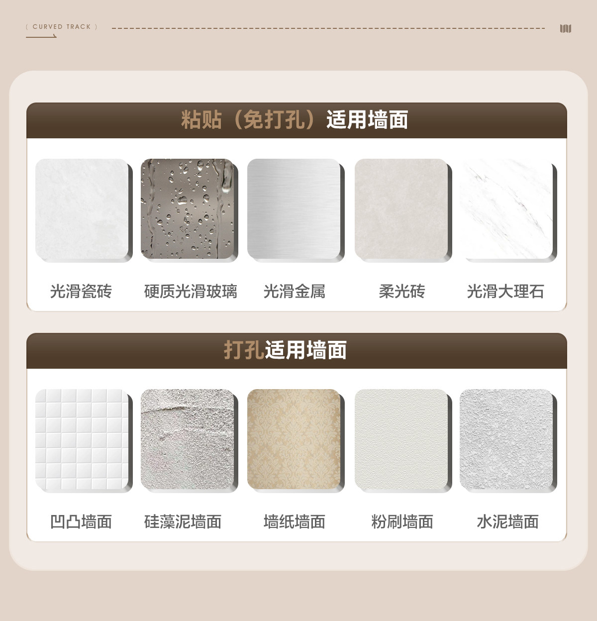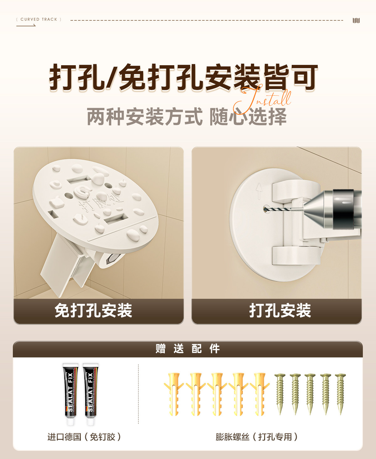 | Color Classification | Dual-Purpose Punching/No Punching [Free Two Installation Accessories],Cream [Track],Gun Gray [Track],High-Grade Gray [Curtain + Track] (Bonus: Magnetic Suction),Cream White [Curtain + Track] (Free: Magnetic Suction),Moon Branch Shadow [Curtain + Track] (Free: Magnetic Suction),Waffle Weave [Curtain + Track] (Free: Magnetic Closure),High-Grade Gray [Curtain + Track + Water Retaining Strip] (Bonus: Magnetic Suction),Cream White [Curtain + Track + Water Barrier] (Free: Magnetic Suction),Moon Branch Shadow [Curtain + Track + Water Barrier] (Free: Magnetic Suction),Waffle Weave Shower Curtain Set [Curtain + Rod + Water Barrier] (Free: Magnetic Hooks) |