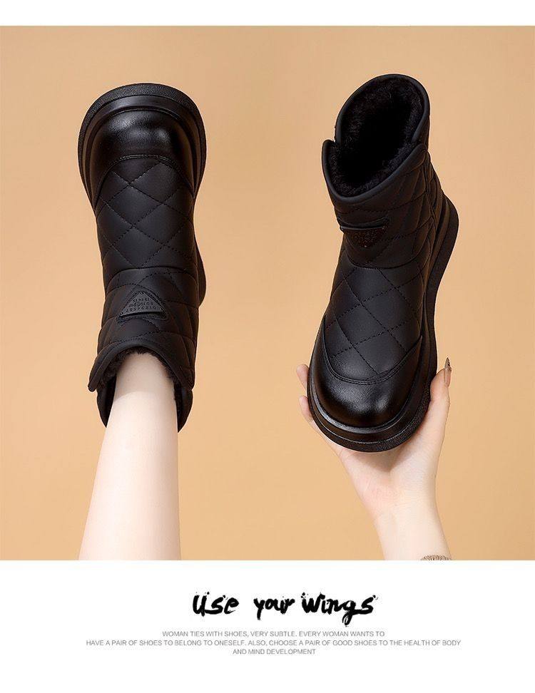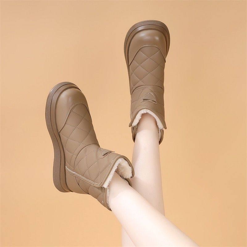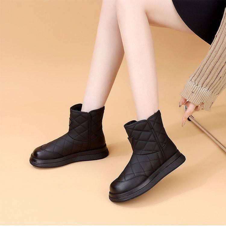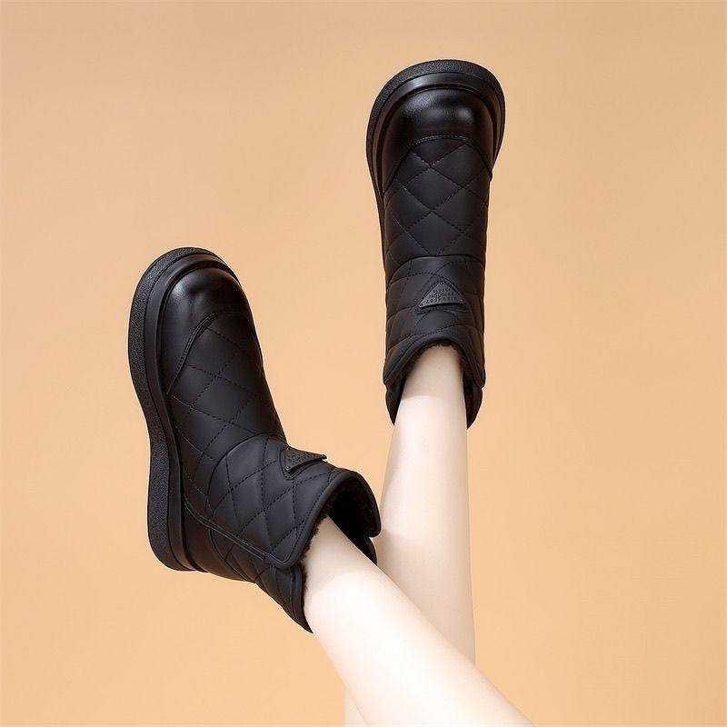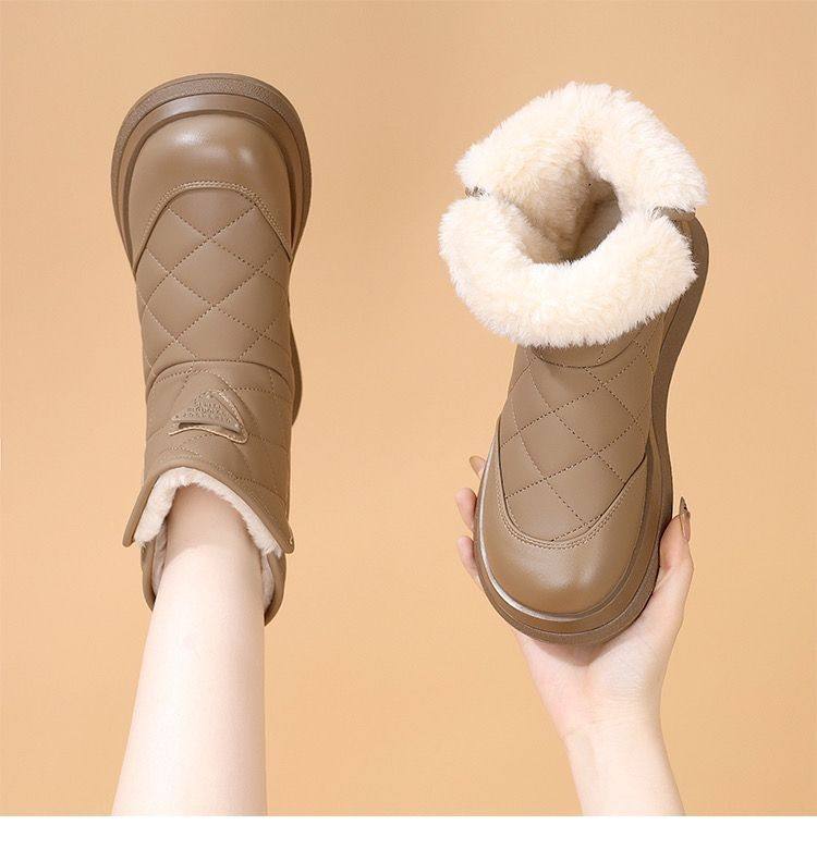 Brand Genuine Leather Thick-Soled Snow Boots for Women 2025 New Winter Fleece-Lined Thickened Warm Cotton Shoes Waterproof Non-Slip Cotton Boots