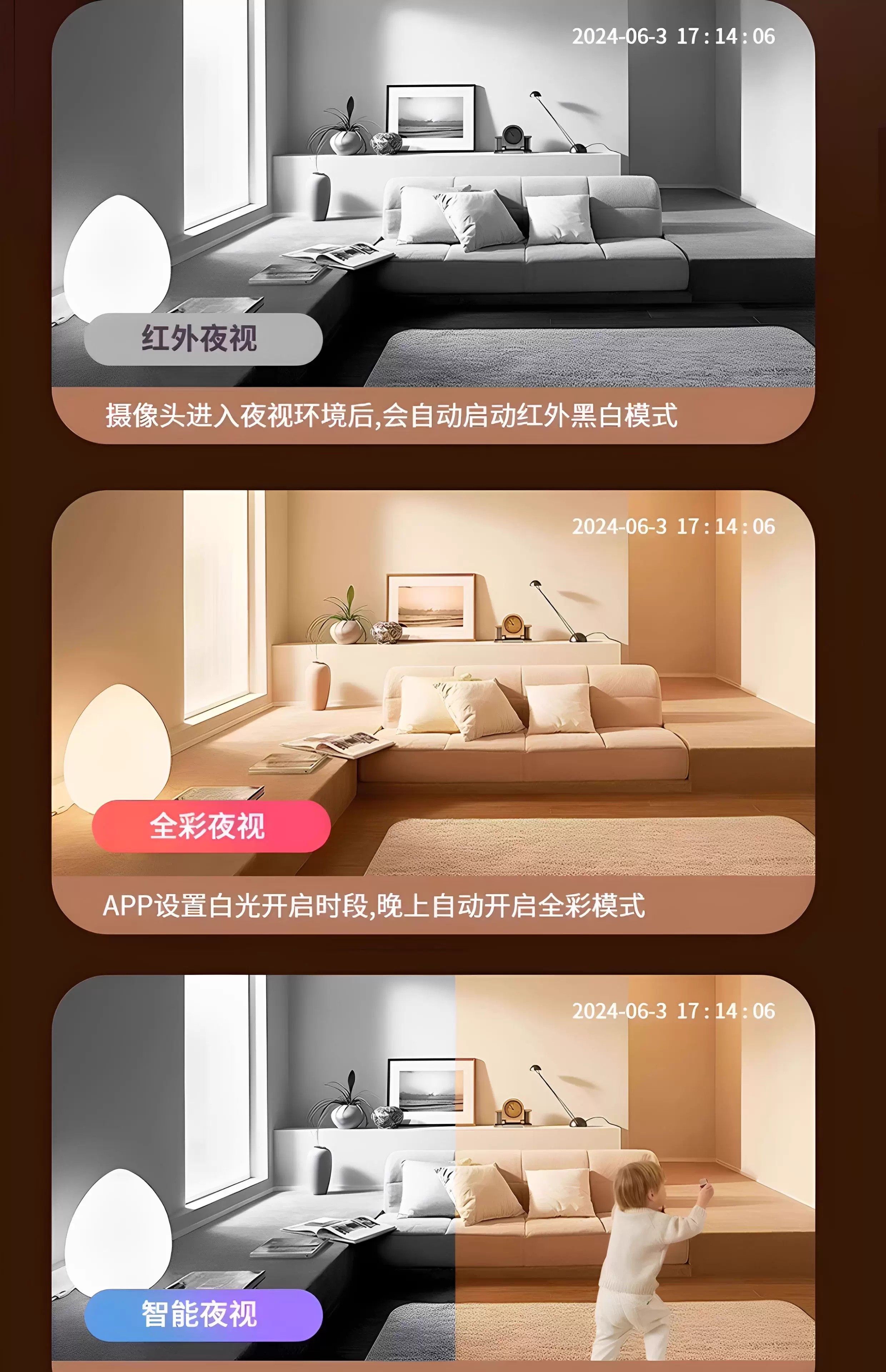 | Applicable Scenarios | Examination Room Monitoring,Remote Education and Learning,Video Conferencing and Remote Office,Natural Disaster or Emergency Event Monitoring,Remote Communication and Social Networking,Pet Care,Monitor Express Delivery and Packages,Field Monitoring,Indoor,Nanny or Caregiver Monitoring,Caring for the Elderly and Children,Door and Corridor Monitoring,Outdoor,Special Environment Monitoring |