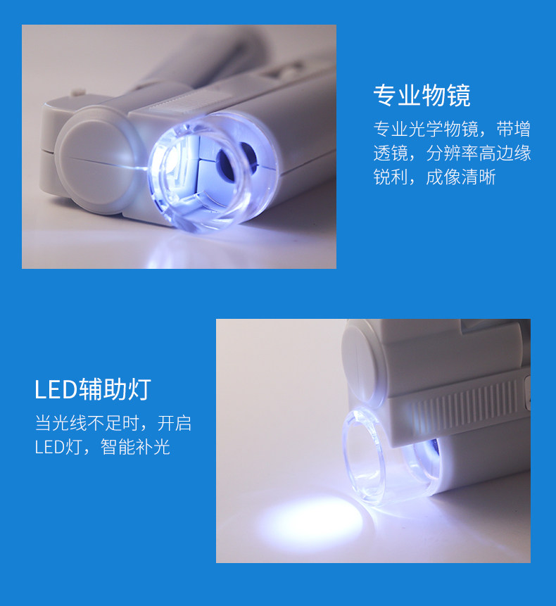 Handheld Microscope for Primary and Secondary School Students, 100X Printed Dot Magnifying Glass with Scale for Color Identification, High Magnification Reading, Portable, High-Definition, 40X Scale, Simple, Small, Foldable, Genuine Product