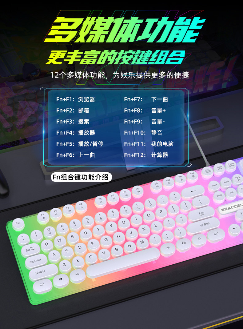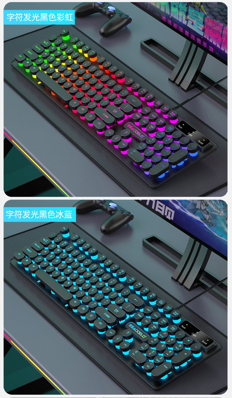 | Color Classification | Black Rainbow Character Single Keyboard,White Rainbow Character Single Keyboard,White Ice Blue Character Single Keyboard,Black Ice Blue Character Single Keyboard,White and Orange Light Character Single Keyboard,Black and Orange Light Character Single Keyboard,Black Rainbow Character Keyboard + Gaming Mouse Comes with Mouse Pad,White Rainbow Character Keyboard + Gaming Mouse Comes with Mouse Pad,White Ice Blue Character Keyboard + Gaming Mouse Comes with Mouse Pad,Black Ice Blue Character Keyboard + Gaming Mouse with Free Mouse Pad,White and Orange Light Character Keyboard + Gaming Mouse Comes with Mouse Pad,Black and Orange Light Character Keyboard + Gaming Mouse Comes with Mouse Pad,Black Rainbow Backlit Single Keyboard |