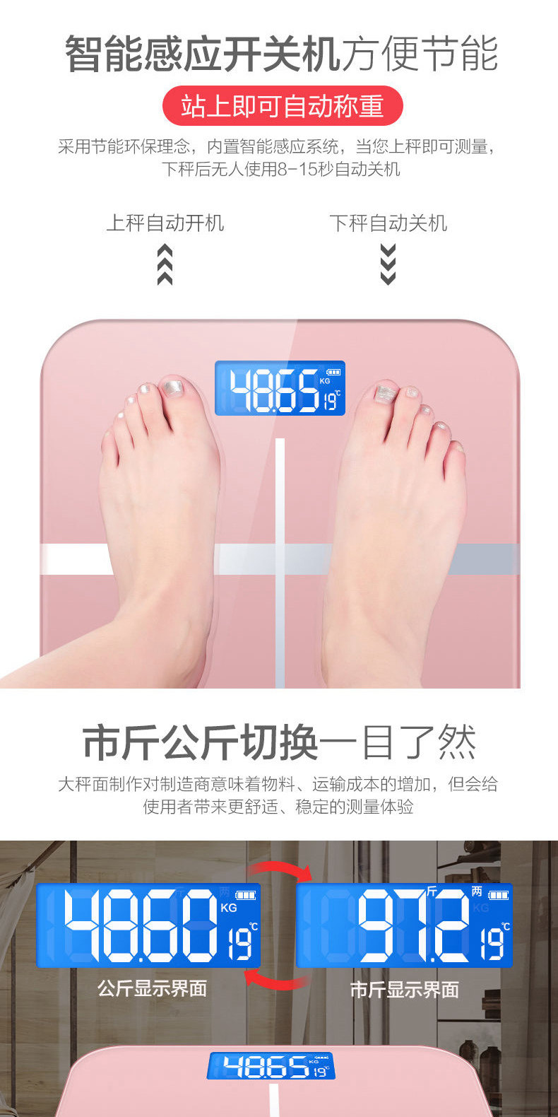 Home Use Weight Scale, Rechargeable Electronic Scale, Accurate Weighing, Body Scale, Tempered Glass, Durable, Accurate Data Measurement