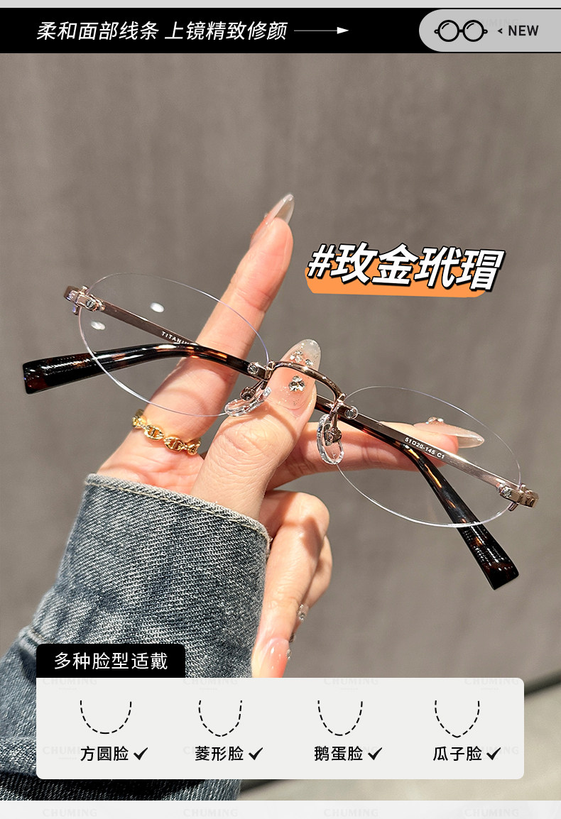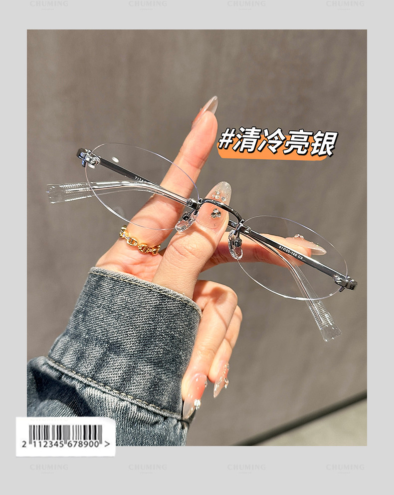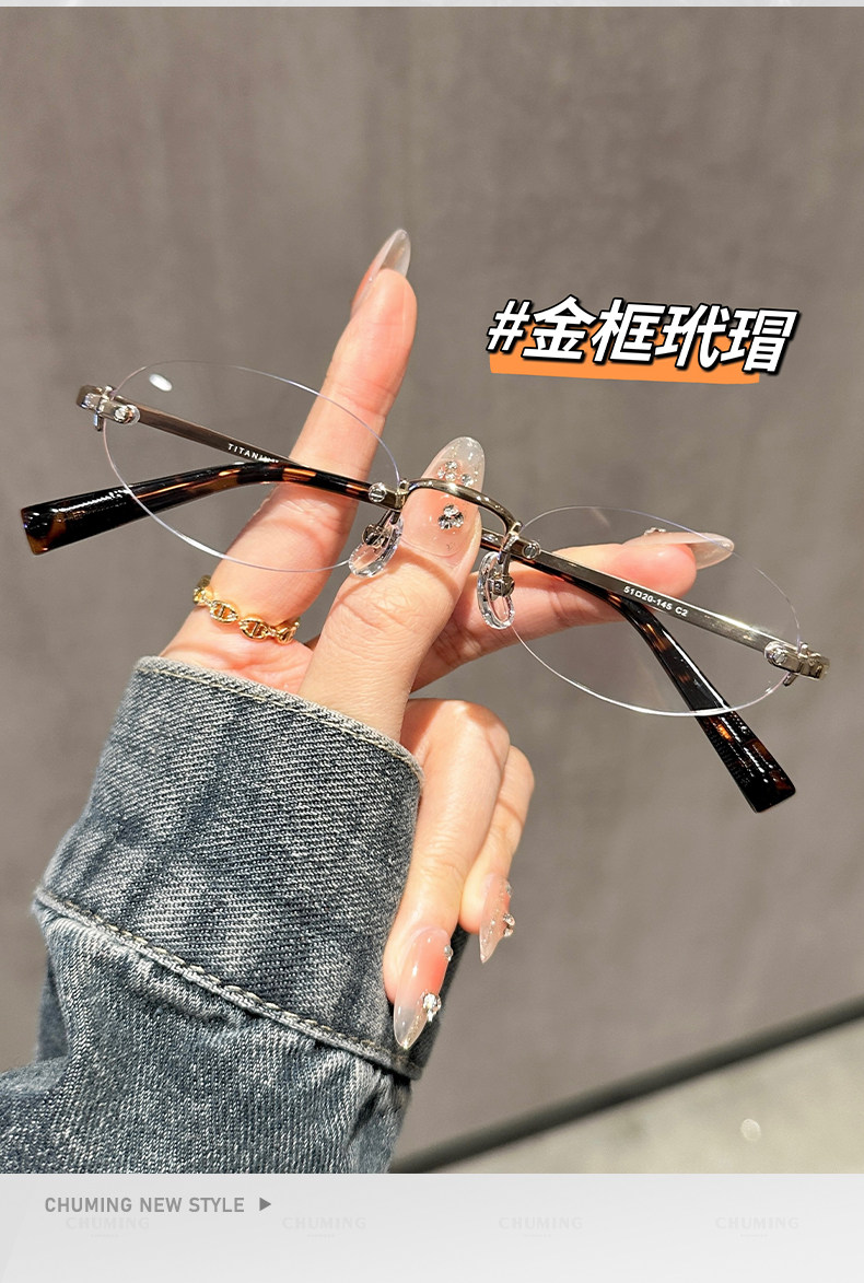 Imported Titanium Frame Cool and Stylish Rimless Glasses for Women with Myopia, Can Be Customized with Prescription, Oval Frameless Blue Light Blocking Eyeglasses
