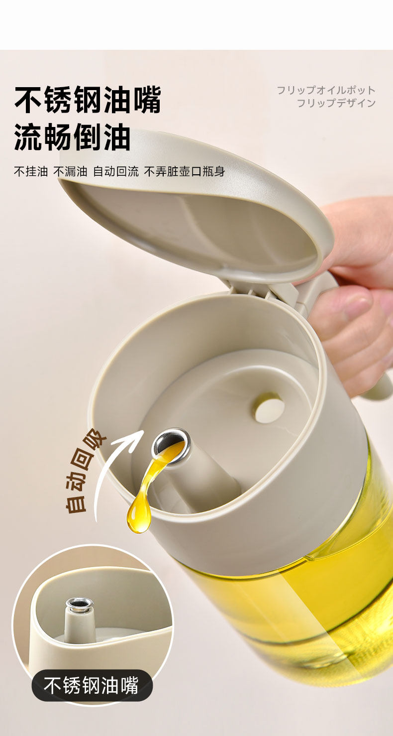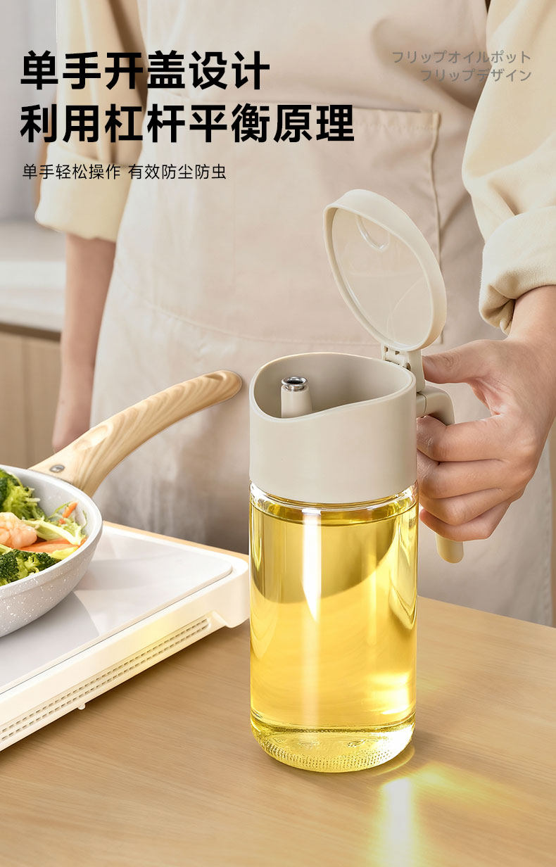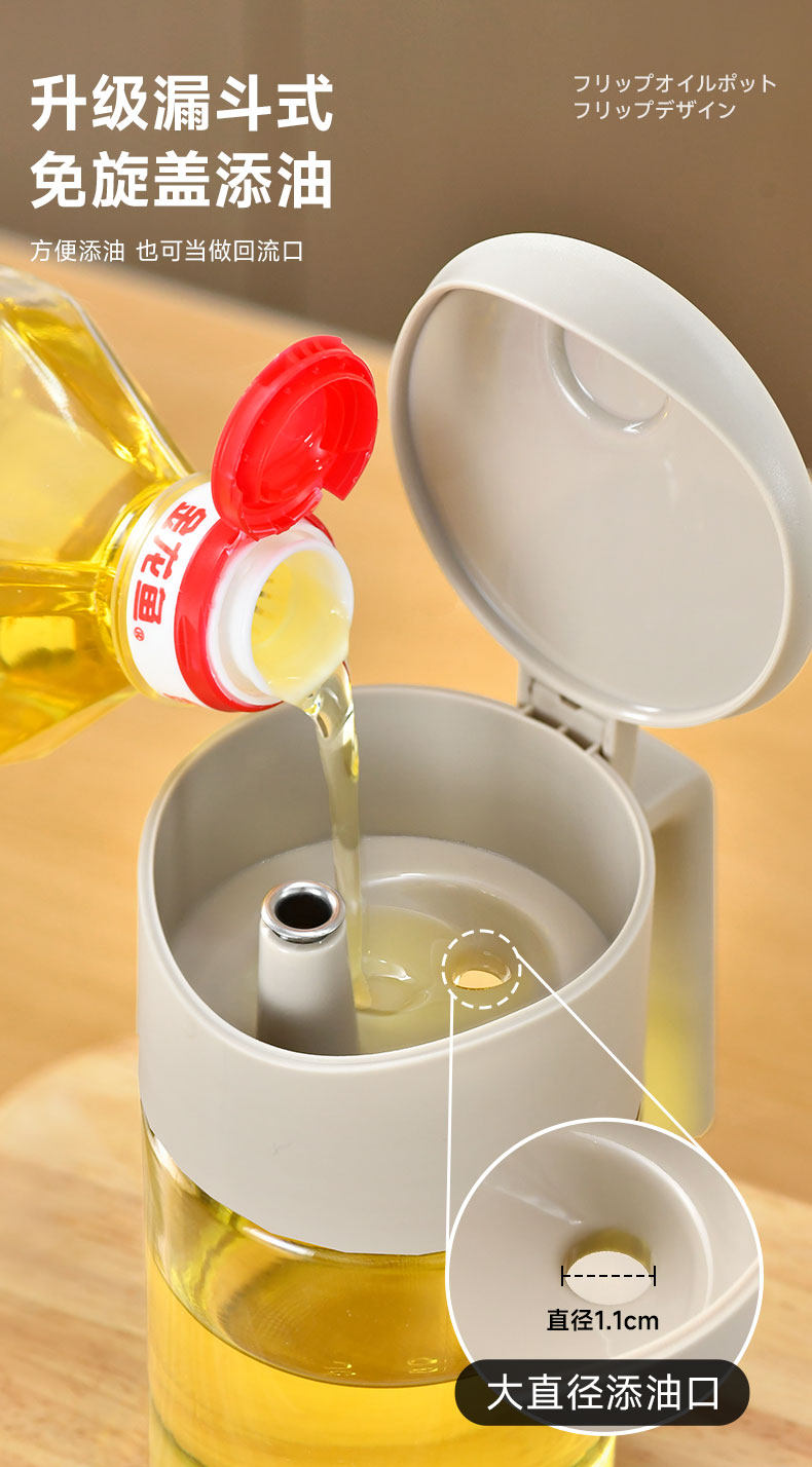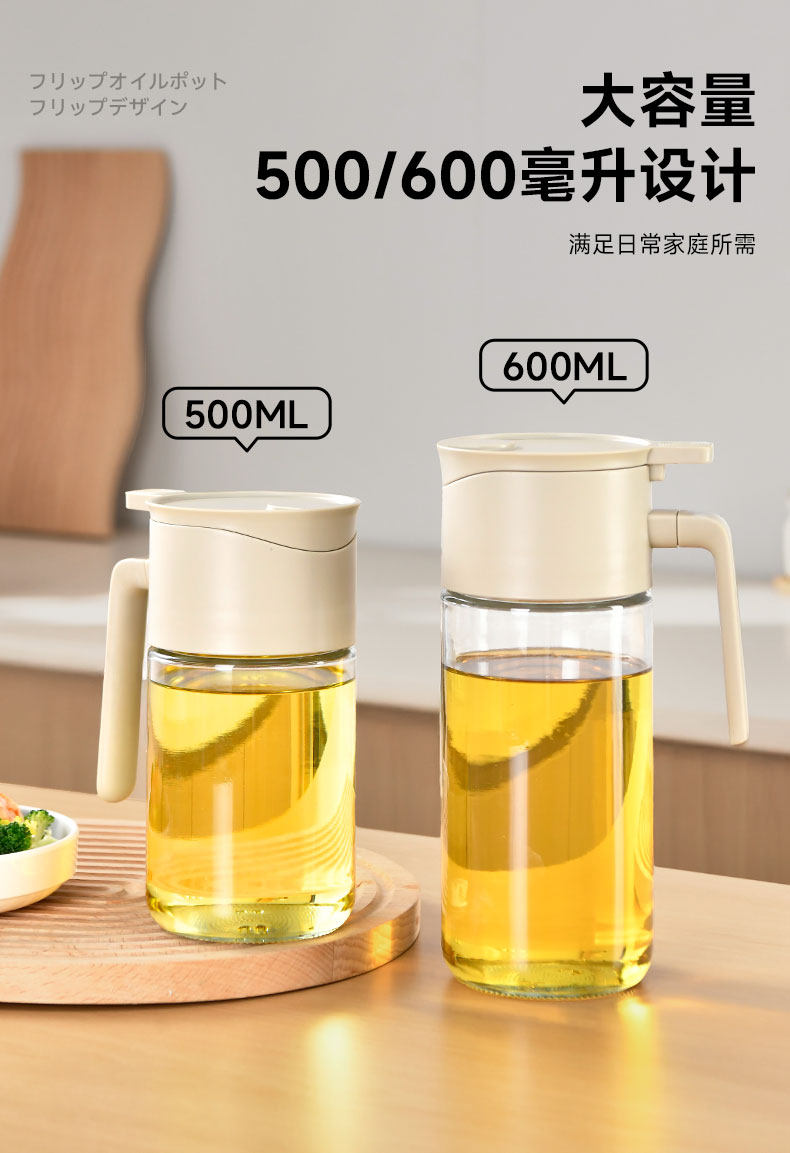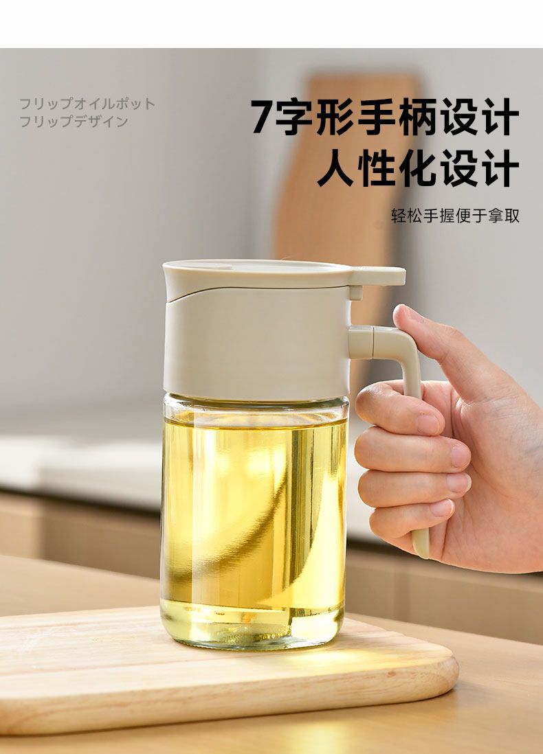 Oil Pot, Household Oil Container, New Model for Kitchen Use, Automatic Opening and Closing, Leak-Proof, No Dripping, No Oil Residue, Large Capacity Glass