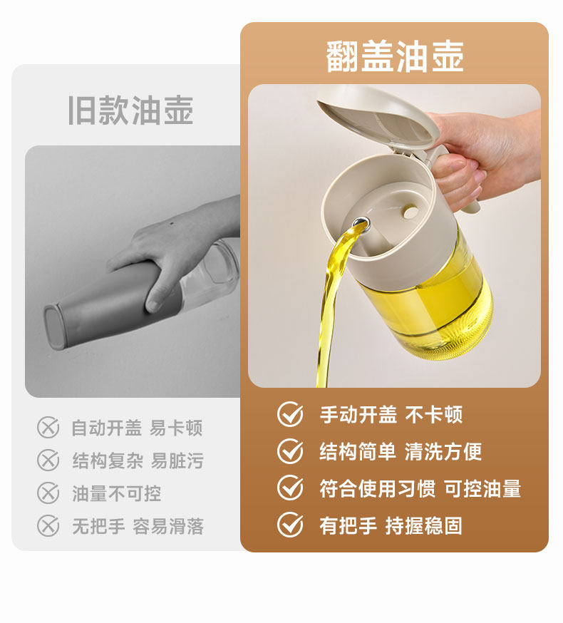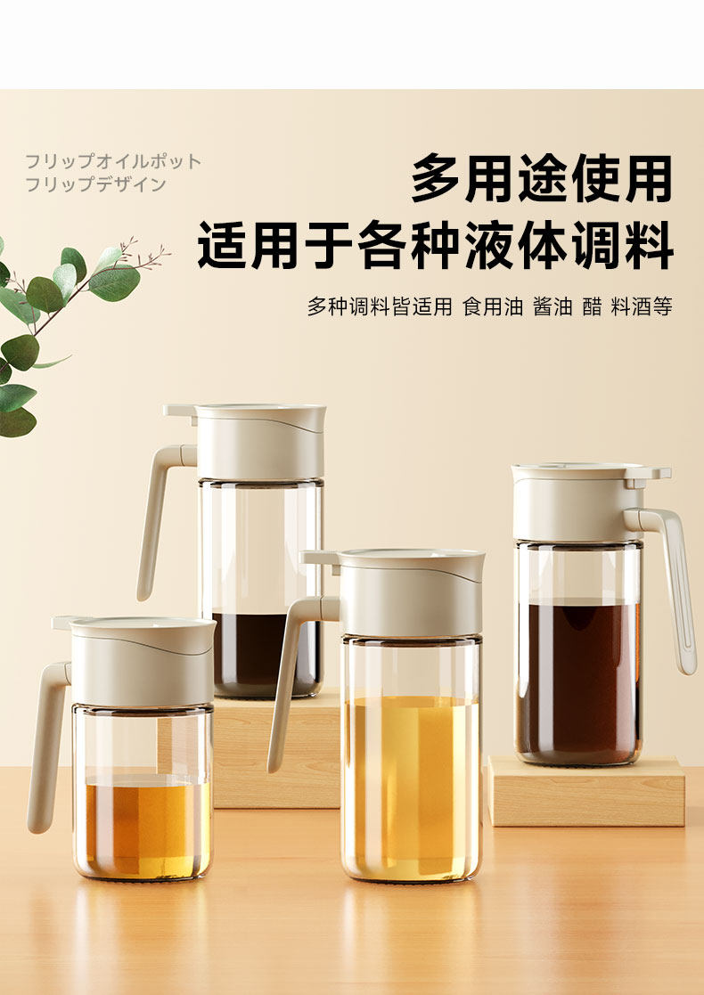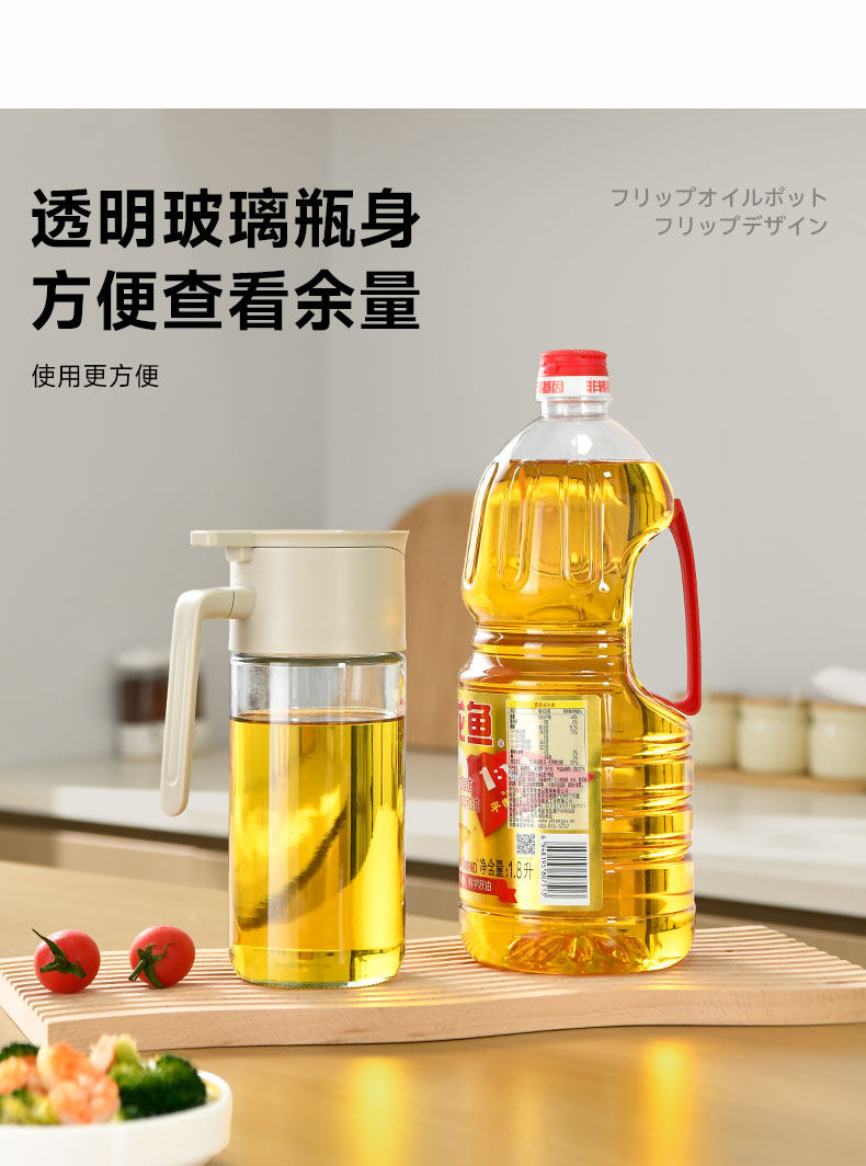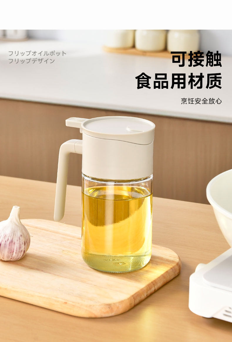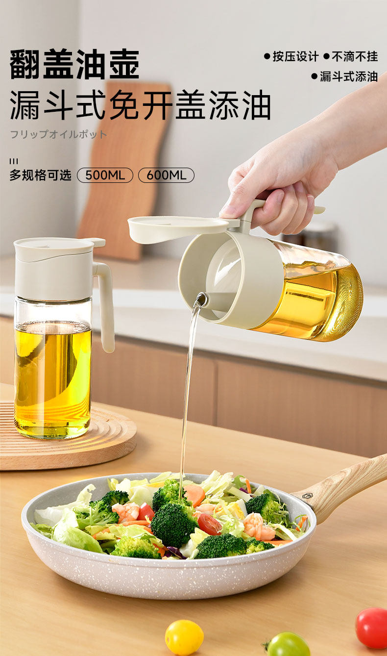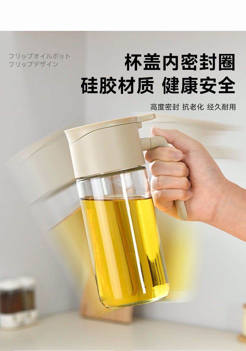 Oil Pot, Household Oil Container, New Model for Kitchen Use, Automatic Opening and Closing, Leak-Proof, No Dripping, No Oil Residue, Large Capacity Glass