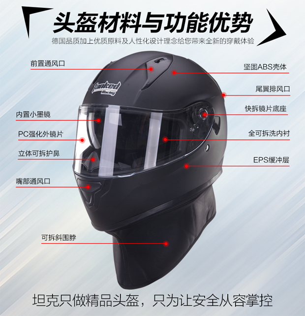 Tanked Racing T536 motorcycle helmet 3C large half helmet all-season sun protection electric vehicle helmet black metropolitan L