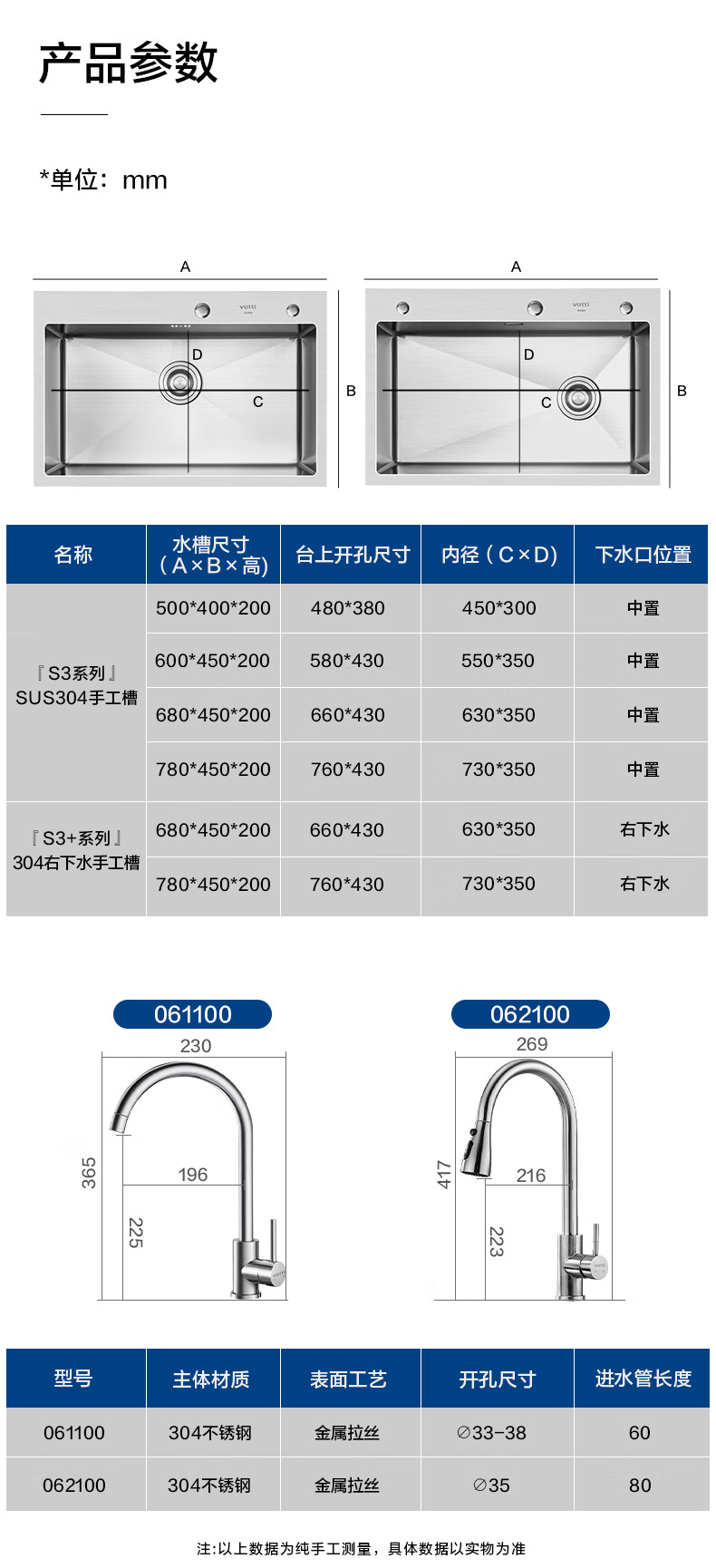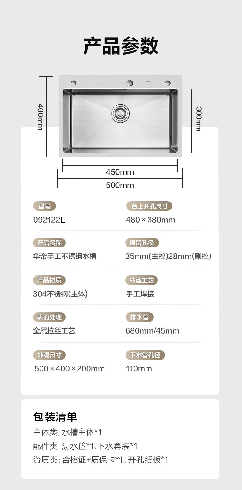 VATTI 304 stainless steel sink large single-slot kitchen sink integrated basin household vegetable sink basin S3 series