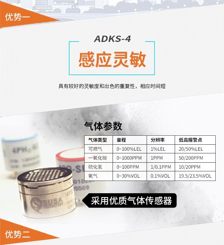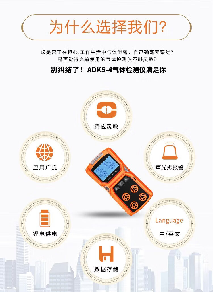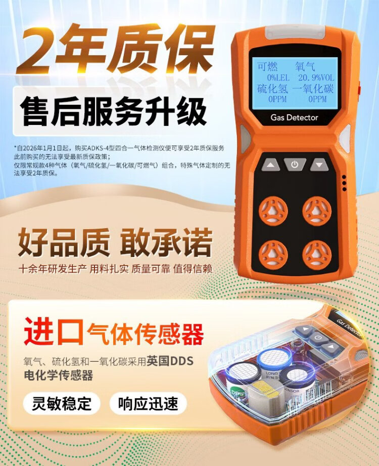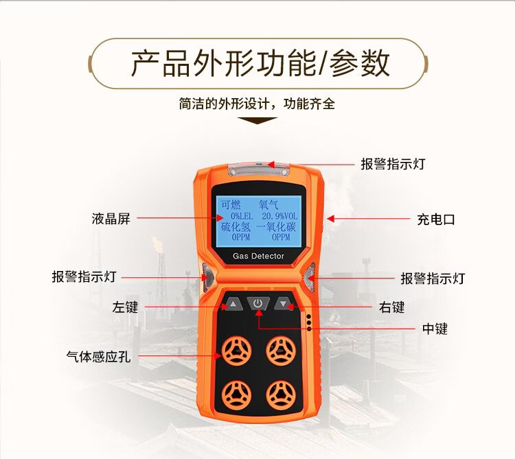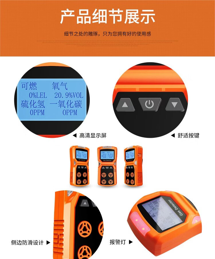 EDKORS four-in-one gas detector combustible oxygen carbon monoxide hydrogen sulfide limited space harmful gas alarm