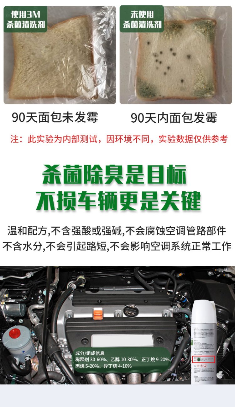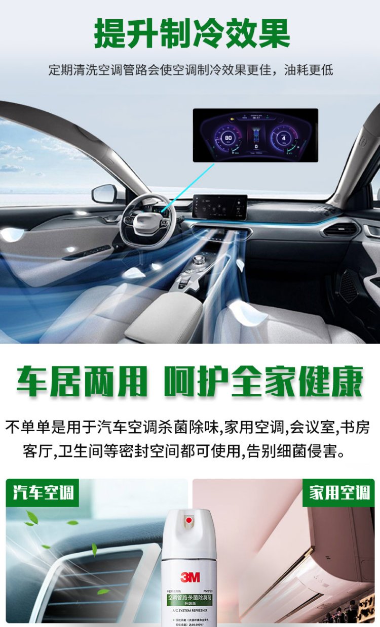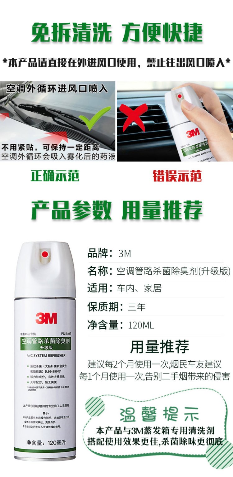 3M air conditioning pipeline no-disassembly cleaning agent car home dual-purpose sterilization and deodorization antibacterial disinfectant interior deodorant