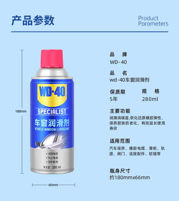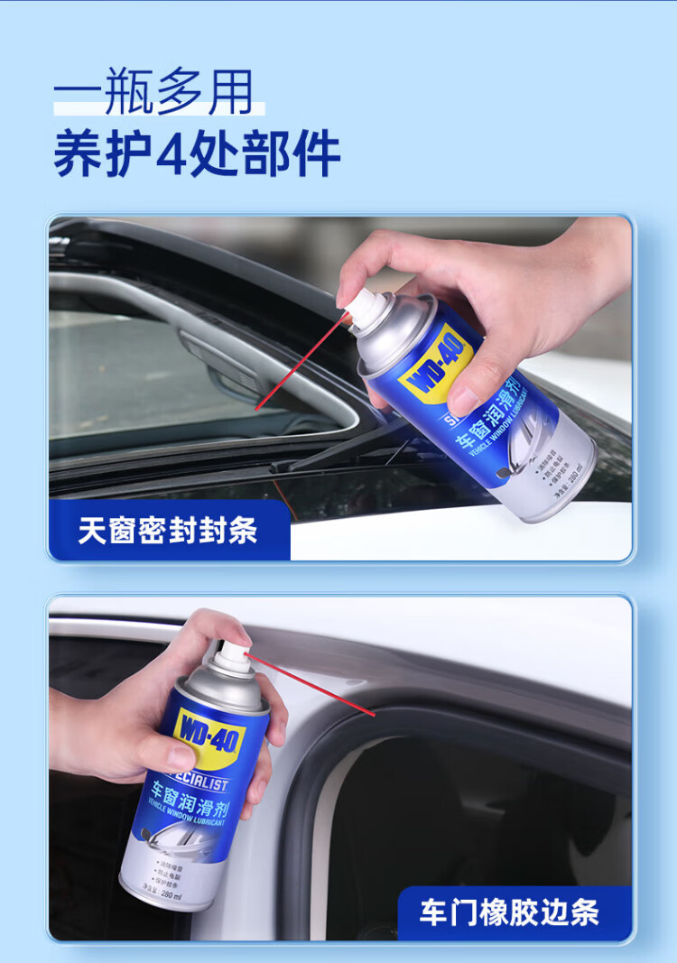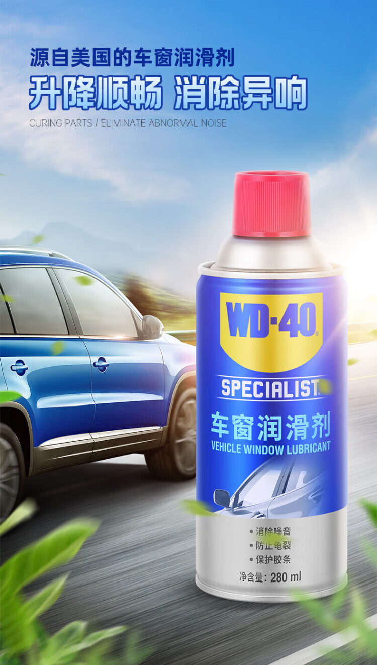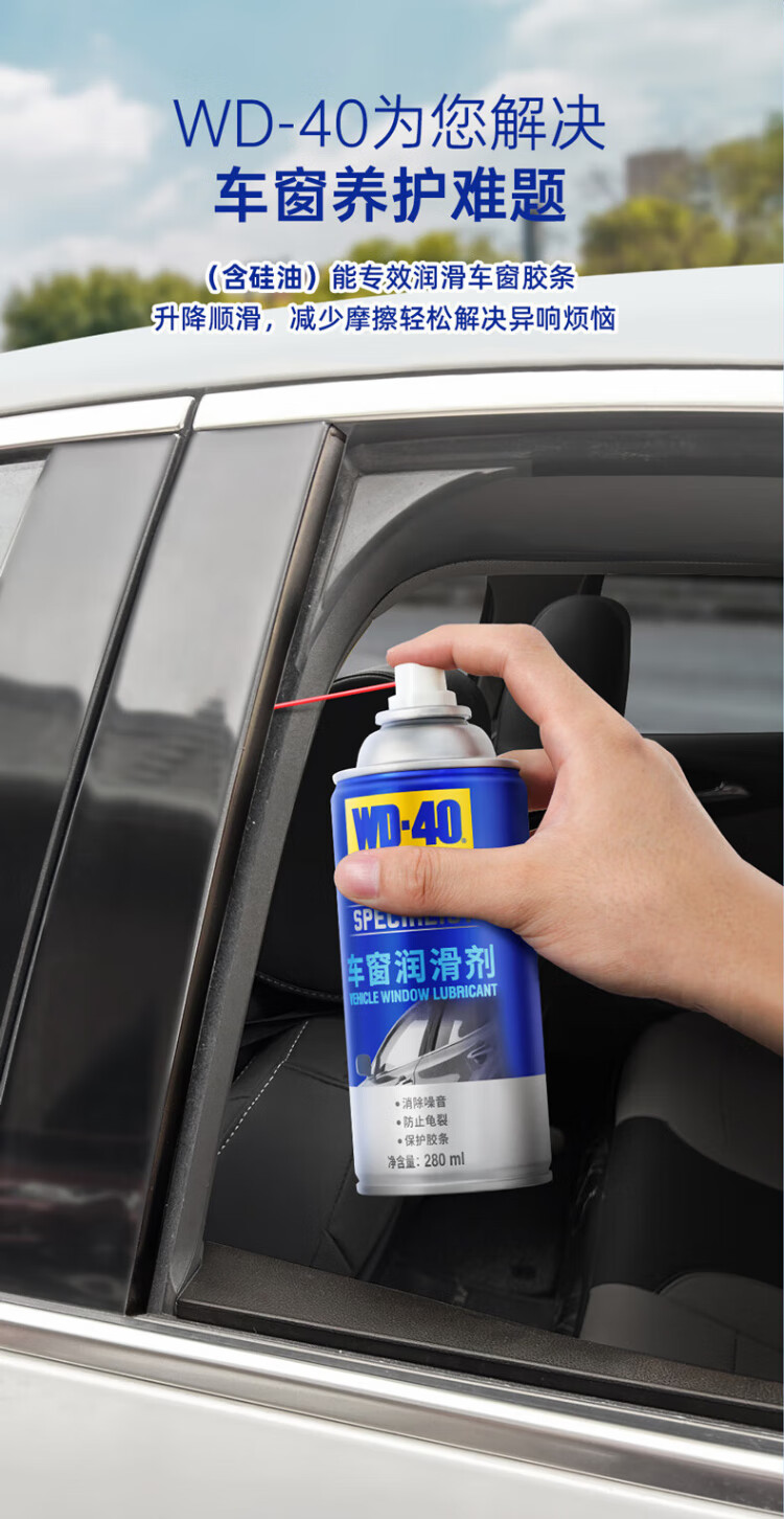 WD-40 car window lubricant wd40 glass lifting noise elimination oil sunroof strip protective agent polishing softening maintenance