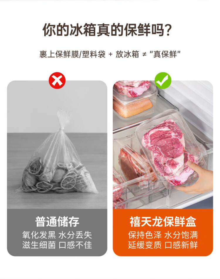 Xitianlong refrigerator crisper food grade refrigerator storage box plastic sealed box vegetable and fruit freezing box 7.3L