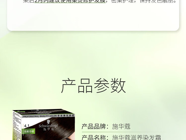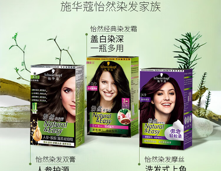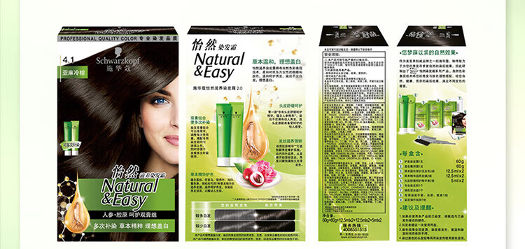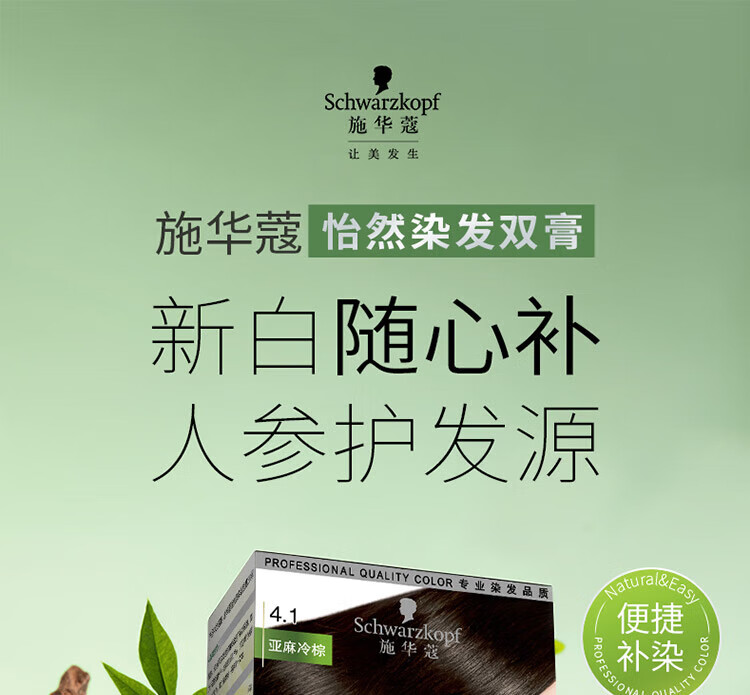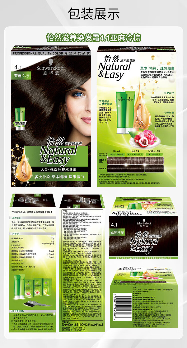 Schwarzkopf Yiran Nourishing Hair Dye Cream 4.1 Linen Cold Brown Hair Dye Hair Cream Plant Ginseng Multiple Whitening Re-Dyeing