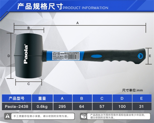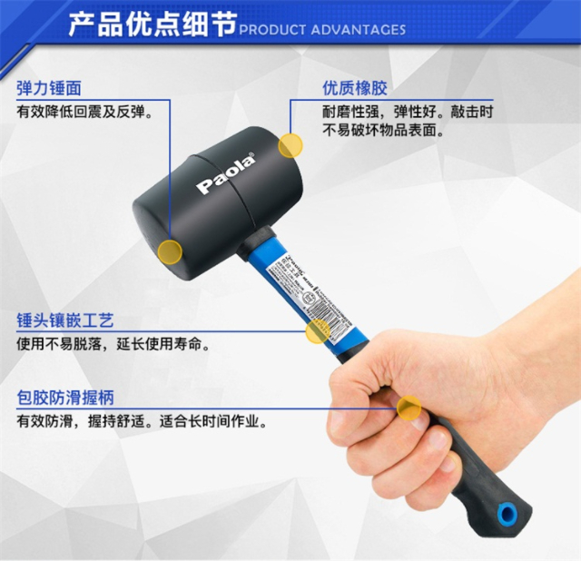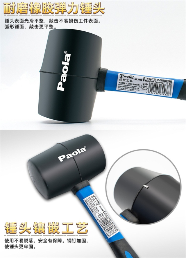 Paola (Paola) 16OZ rubber hammer leather hammer for ceramic tile floor decoration tool installation hammer rubber hammer 2438