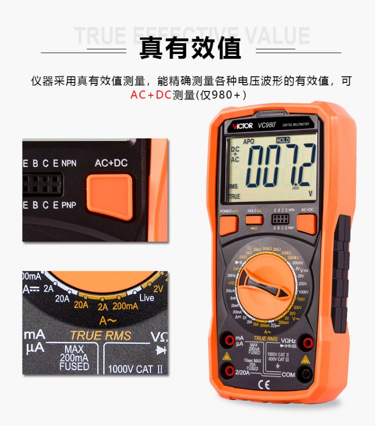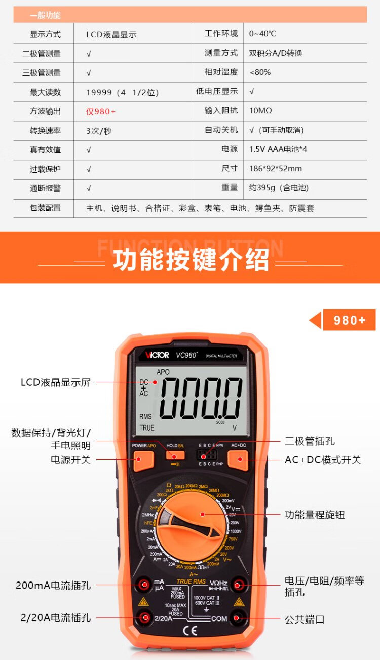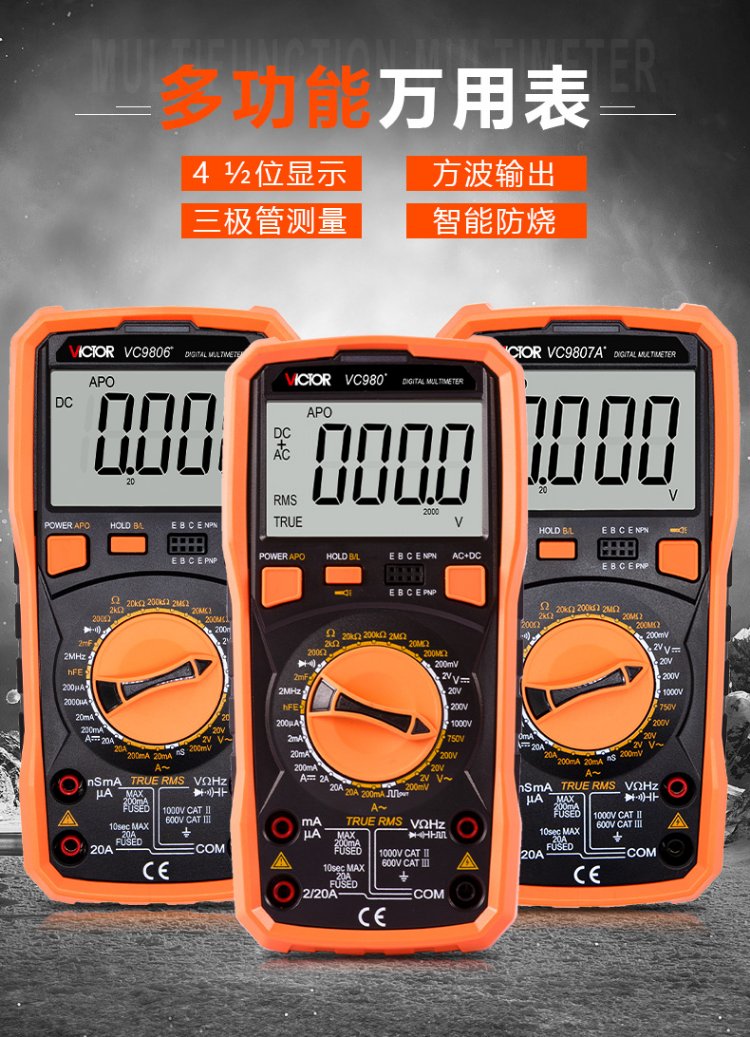 Victory Instrument (VICTOR) high-precision digital multimeter four-and-a-half-digit multimeter for home use with backlight frequency conductivity VC980+