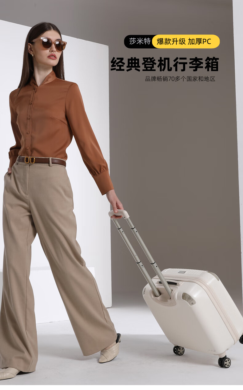 Shamit suitcase 18-inch small silent universal wheel scratch-resistant high-end business boarding trolley case PC338 beige