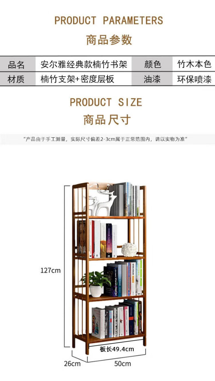 Anya bookshelf floor-standing 127cm multi-layer bamboo simple bookcase storage rack storage storage rack 4 layers 50