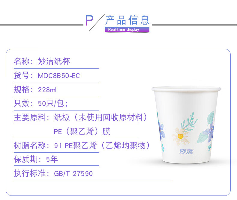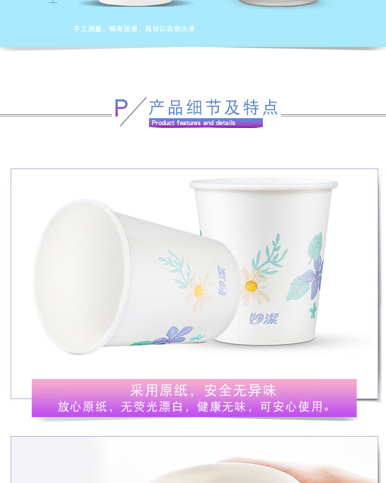 Miaojie Disposable Paper Cup Tea Thickened Food Grade 228ml*1000 Whole Box Wholesale