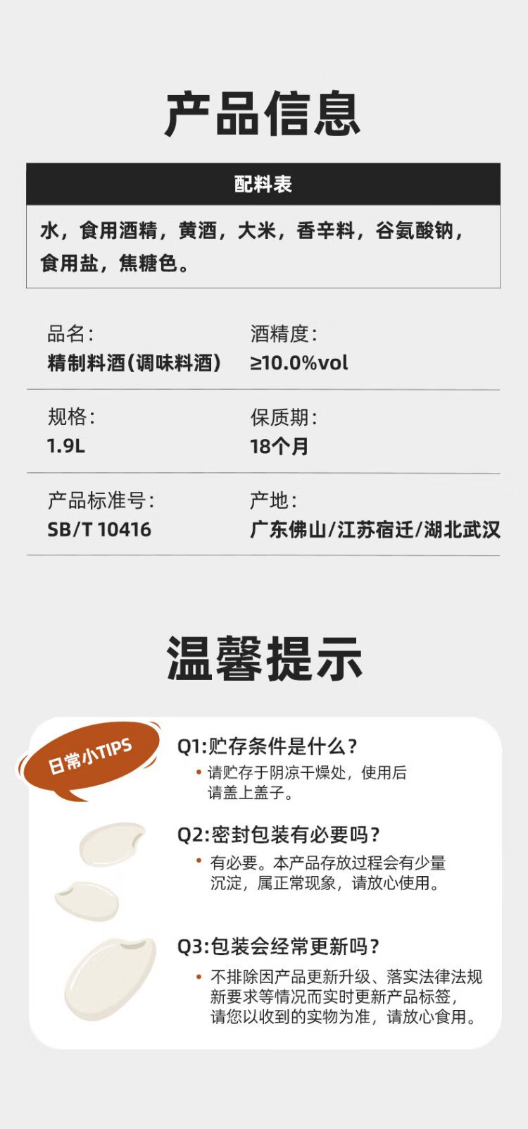 Haitian cooking wine 1.9L 0 added preservatives, condiments, rich wine aroma, remove fishy smell and relieve smell, home use