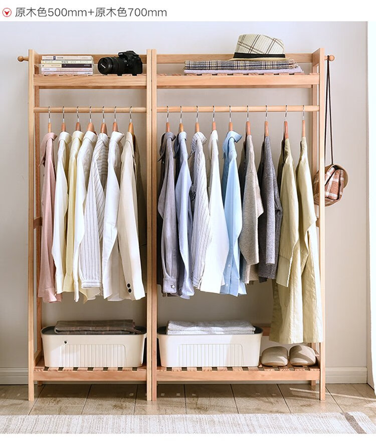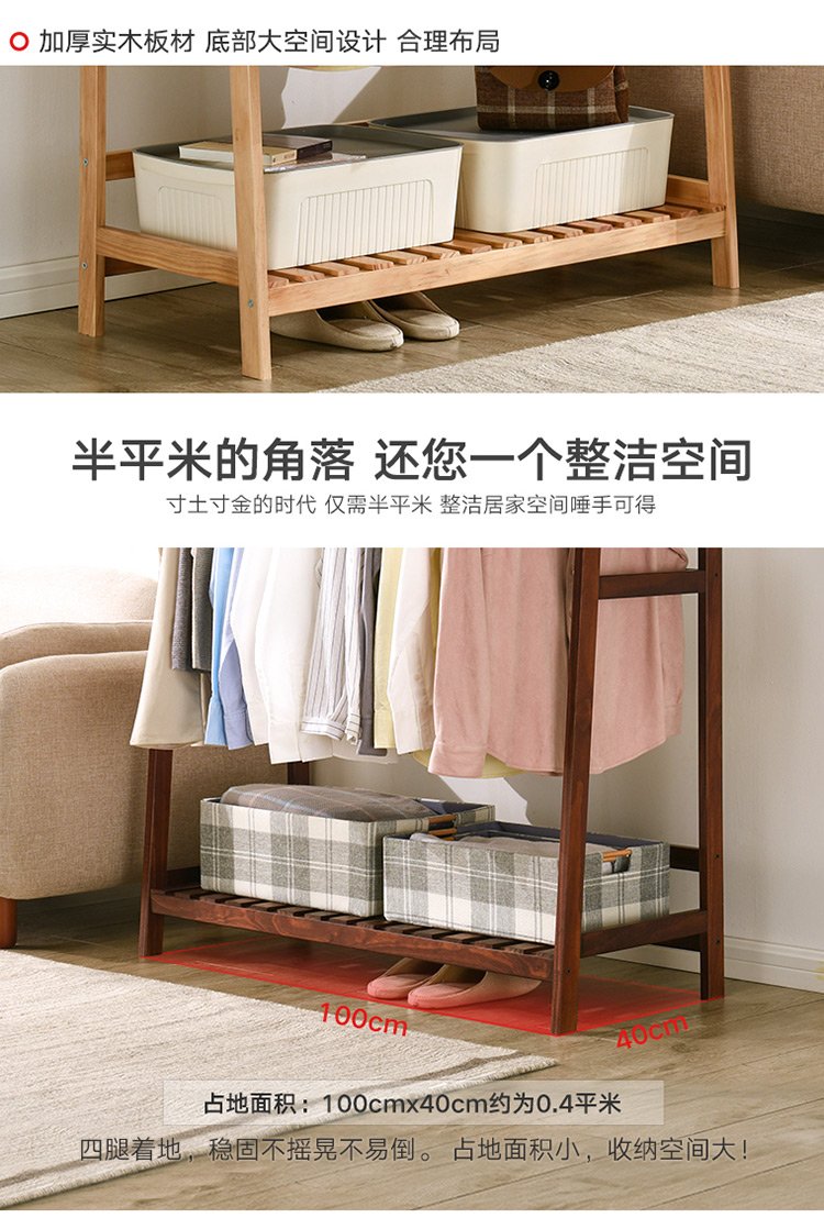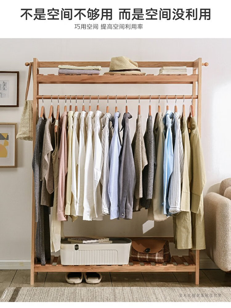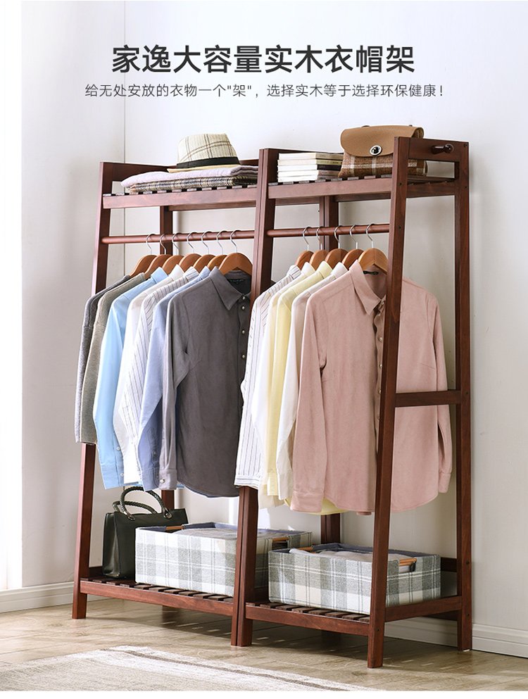 Jiayi coat rack solid wood clothes rack floor-standing bedroom clothes rack simple modern multi-functional storage clothes rack