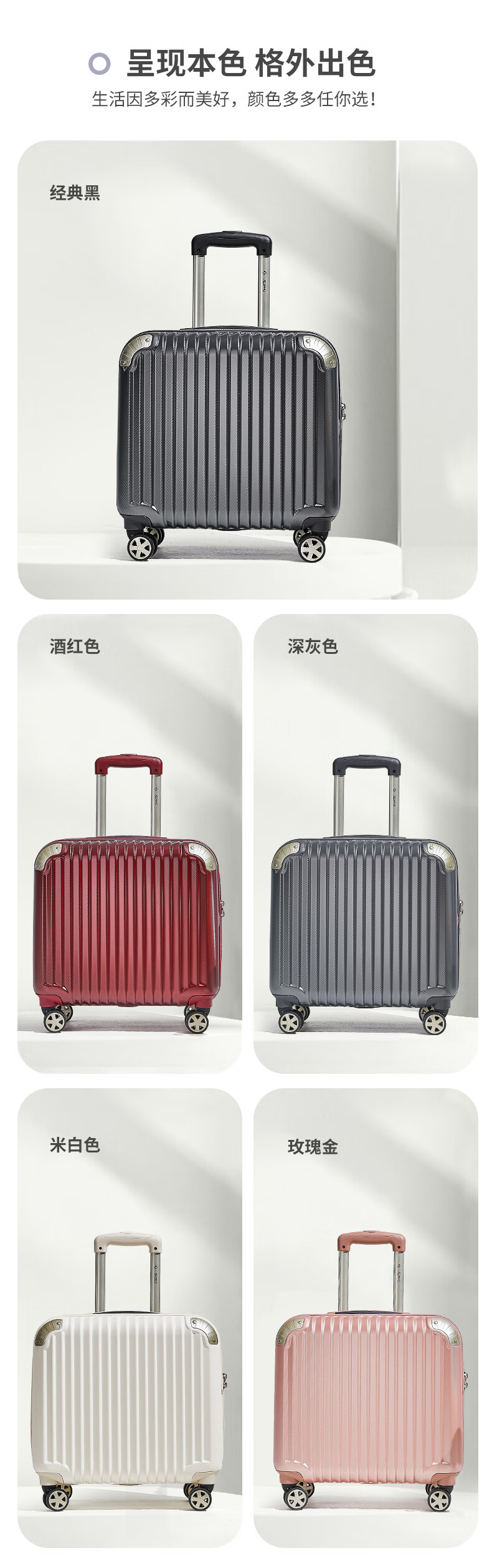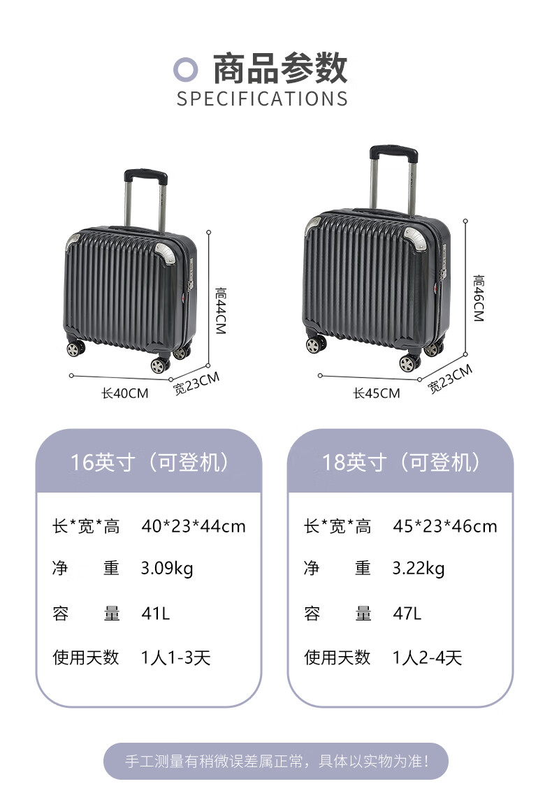 Shamit suitcase 18-inch small silent universal wheel scratch-resistant high-end business boarding trolley case PC338 black