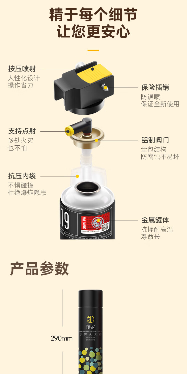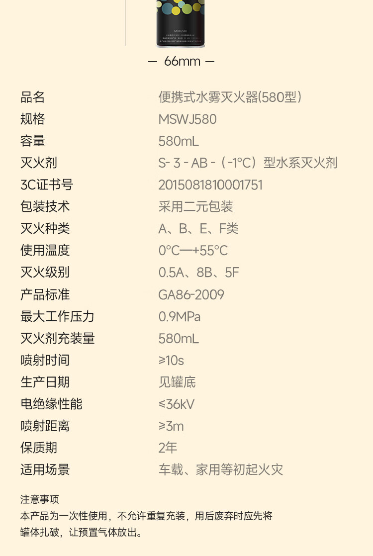 Calming car fire extinguisher car household water-based fire extinguisher car private car annual inspection fire equipment 580ml red