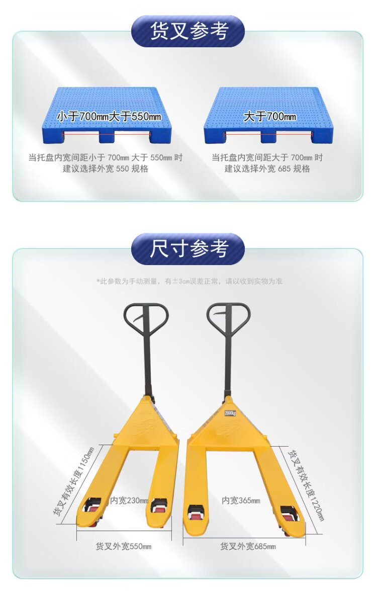 NOBLELIFT manual ground cow DF2 ton hydraulic pallet handling forklift, outer width 550, fork length 1150mm, polyurethane wheel