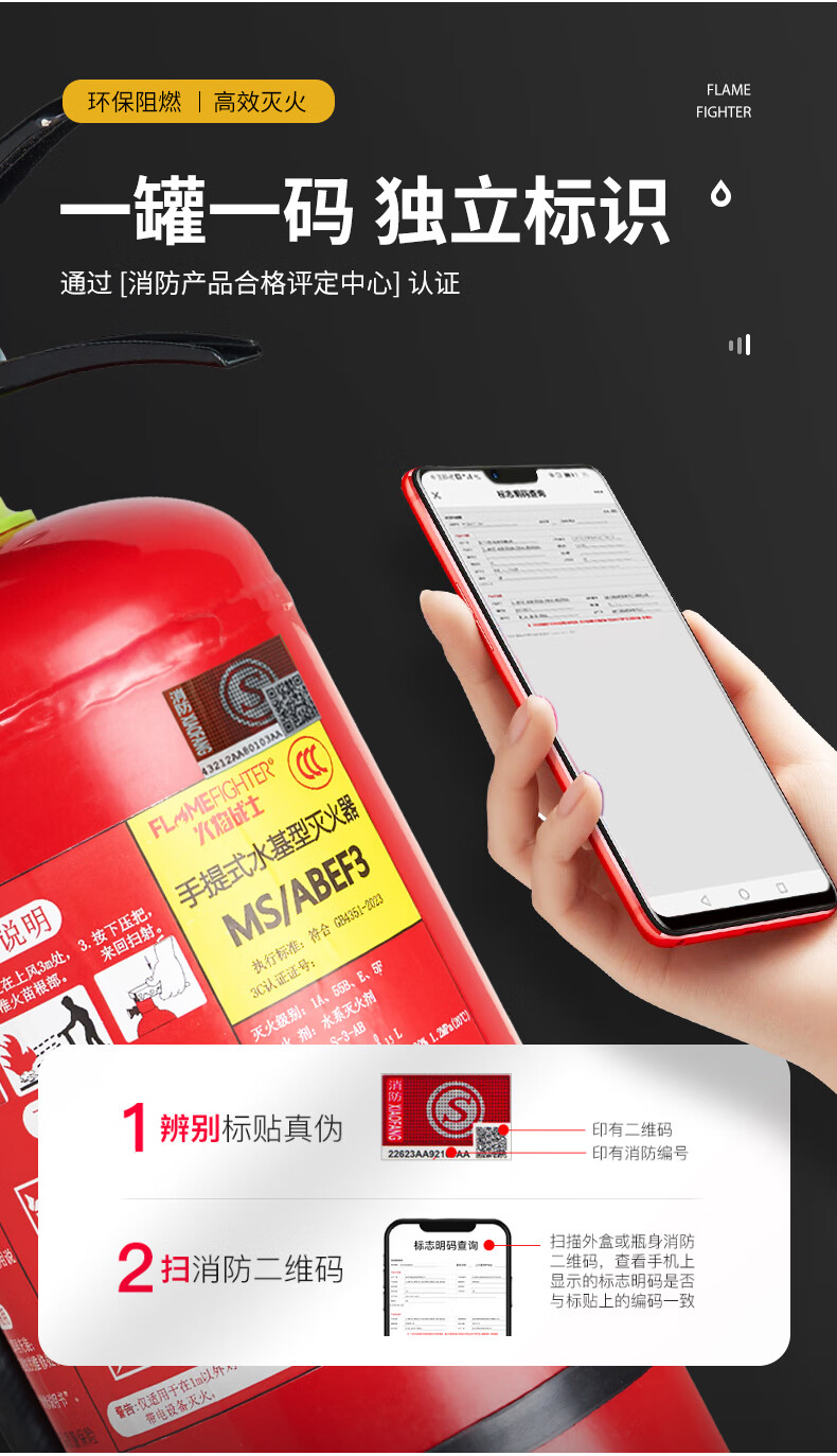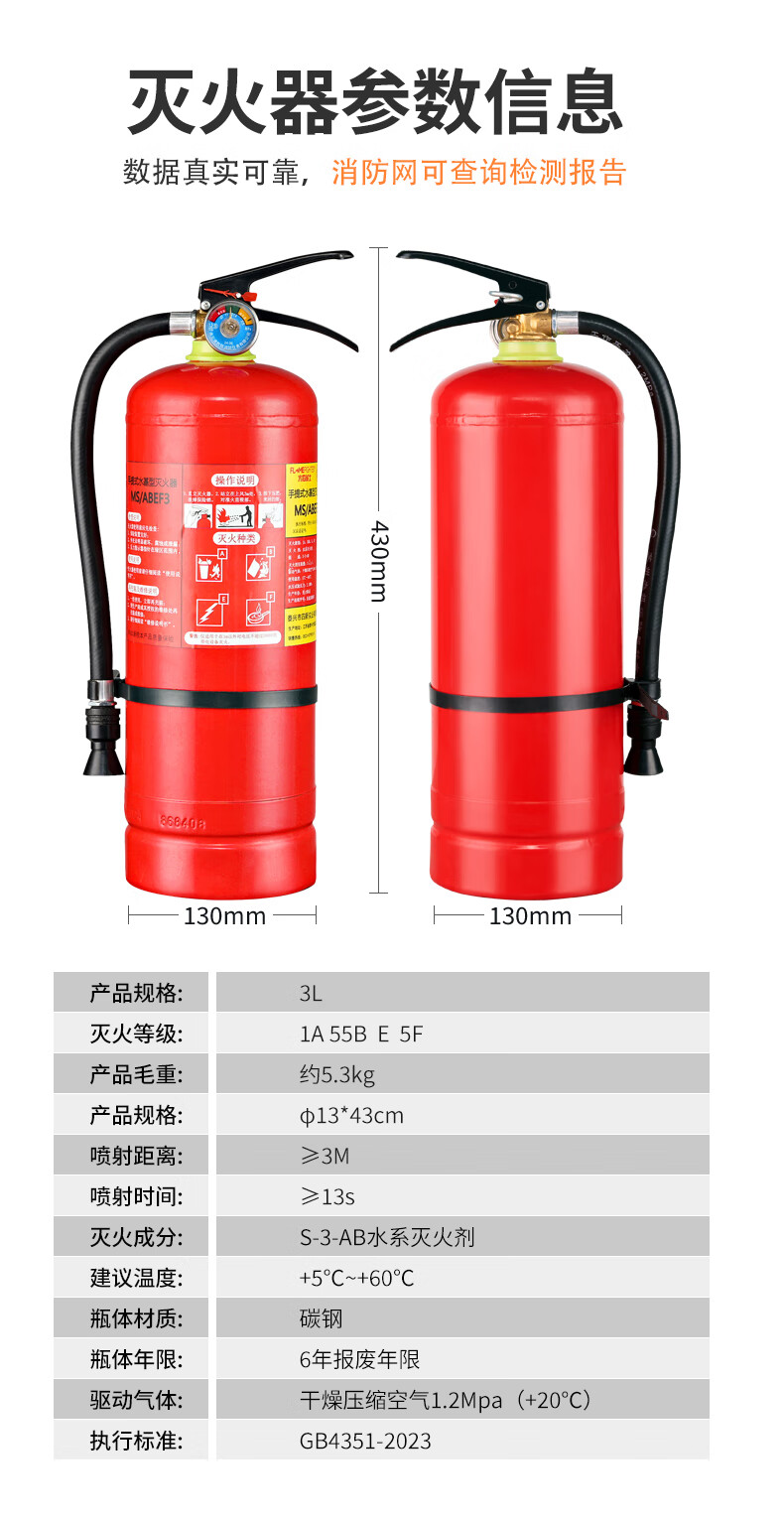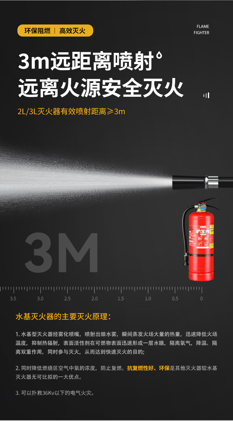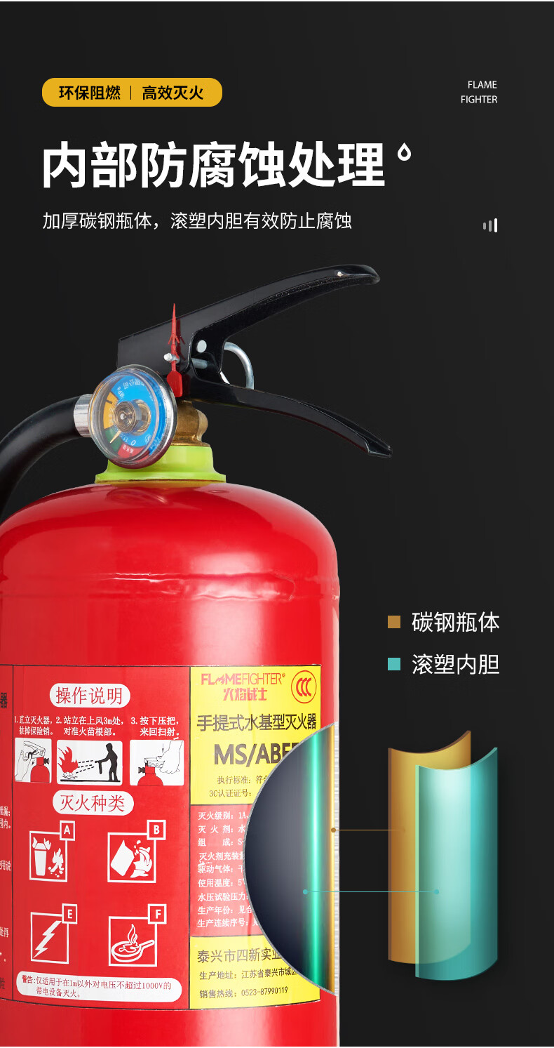 Flame Warrior 25-year new national standard portable water-based fire extinguisher 3L household commercial fire inspection environmental protection large truck