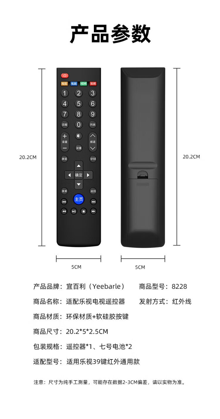 Yi Baili is suitable for Letv LeTV TV remote control universal infrared 39-key Super 3 Super 4 S40 S40air X3 X40SX43 S50 X55 X60S remote control board 8228