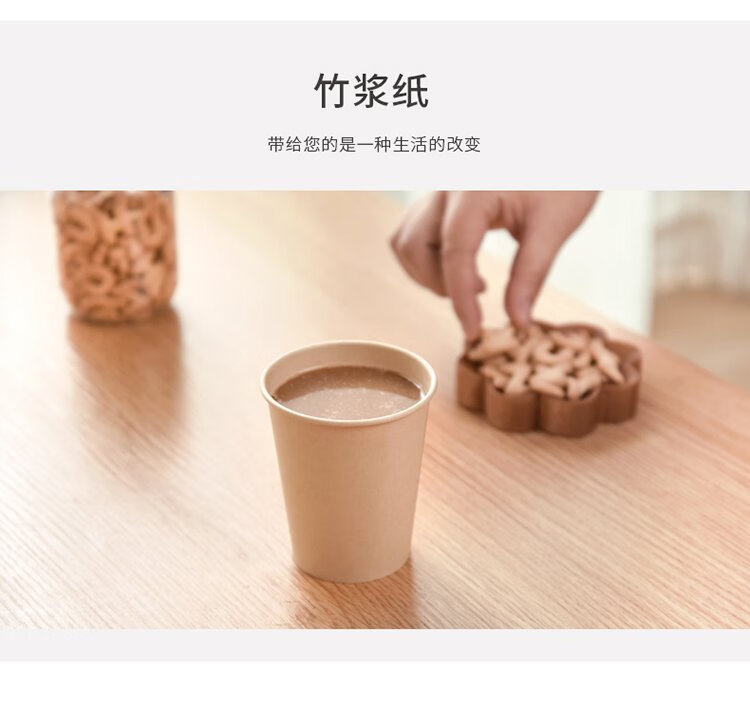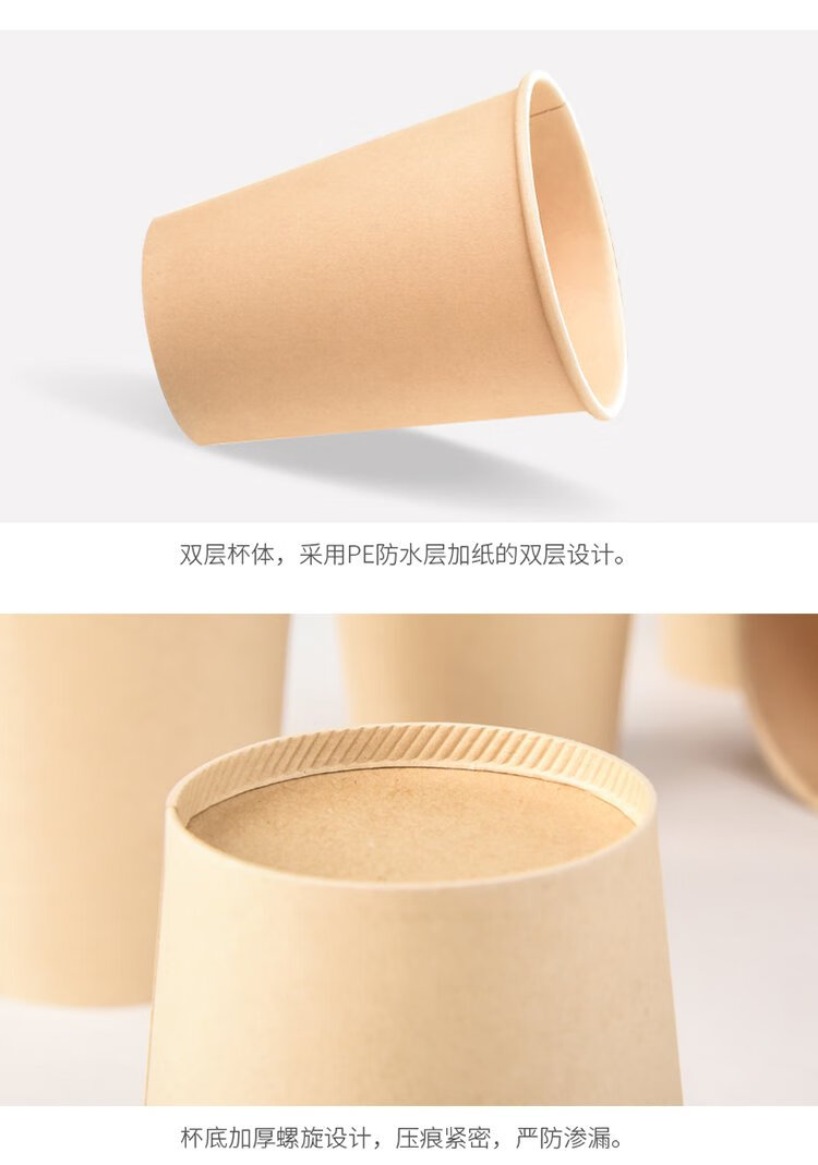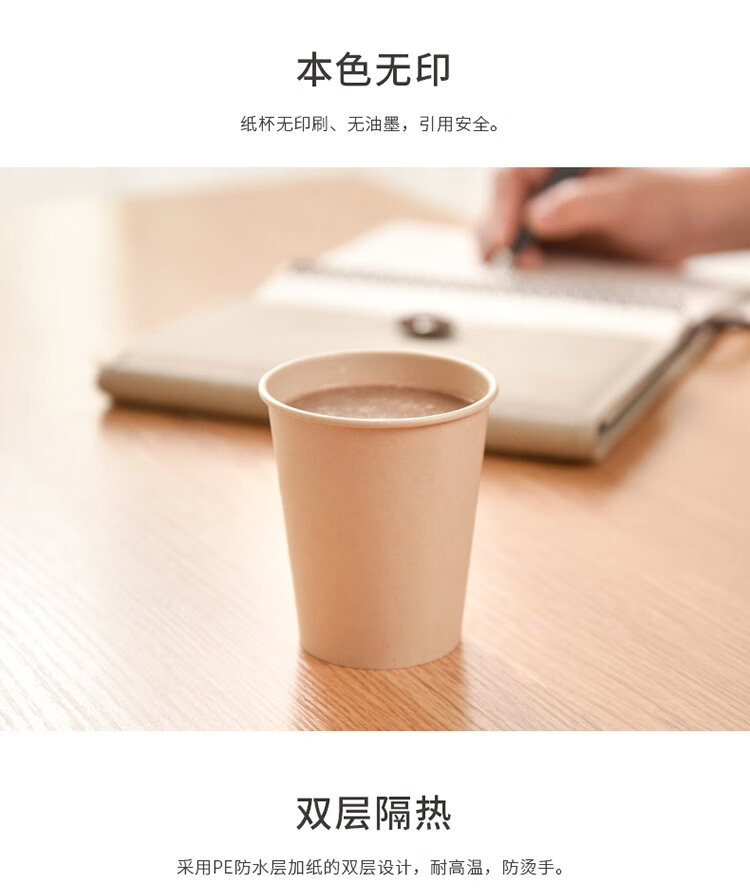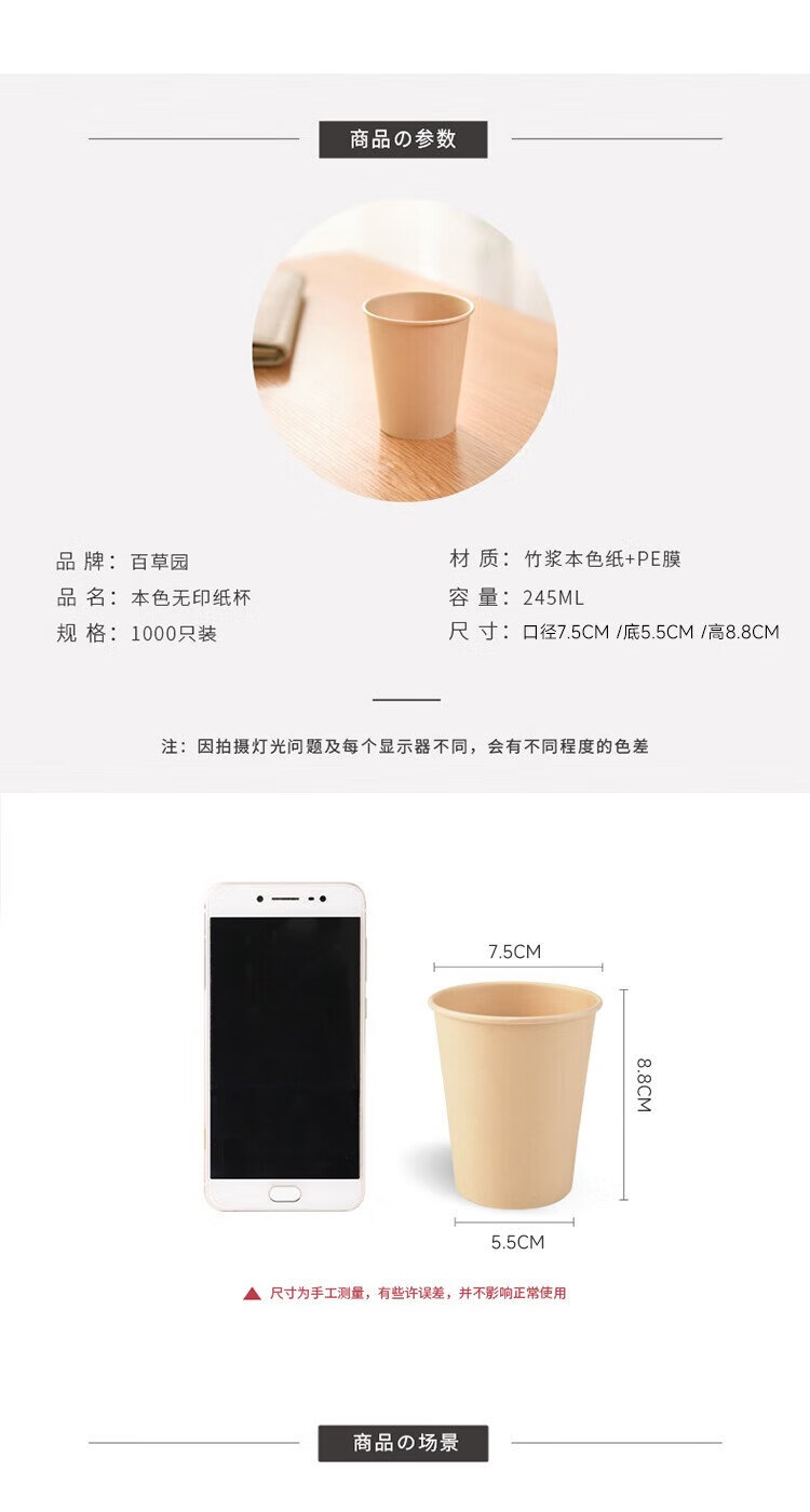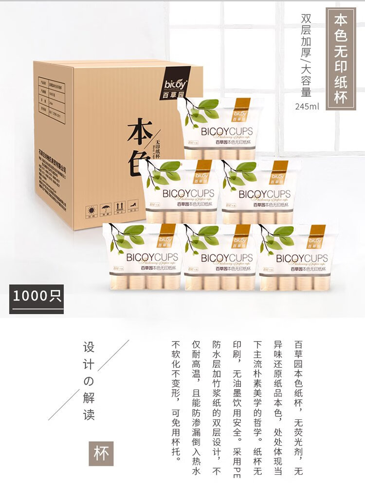 Baicaoyuan paper cup disposable cup 245ml thickened 1000 pieces whole box 9 ounces bamboo pulp natural color unprinted coffee cup water cup