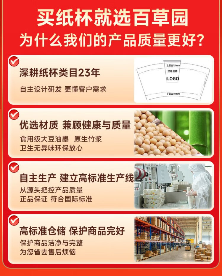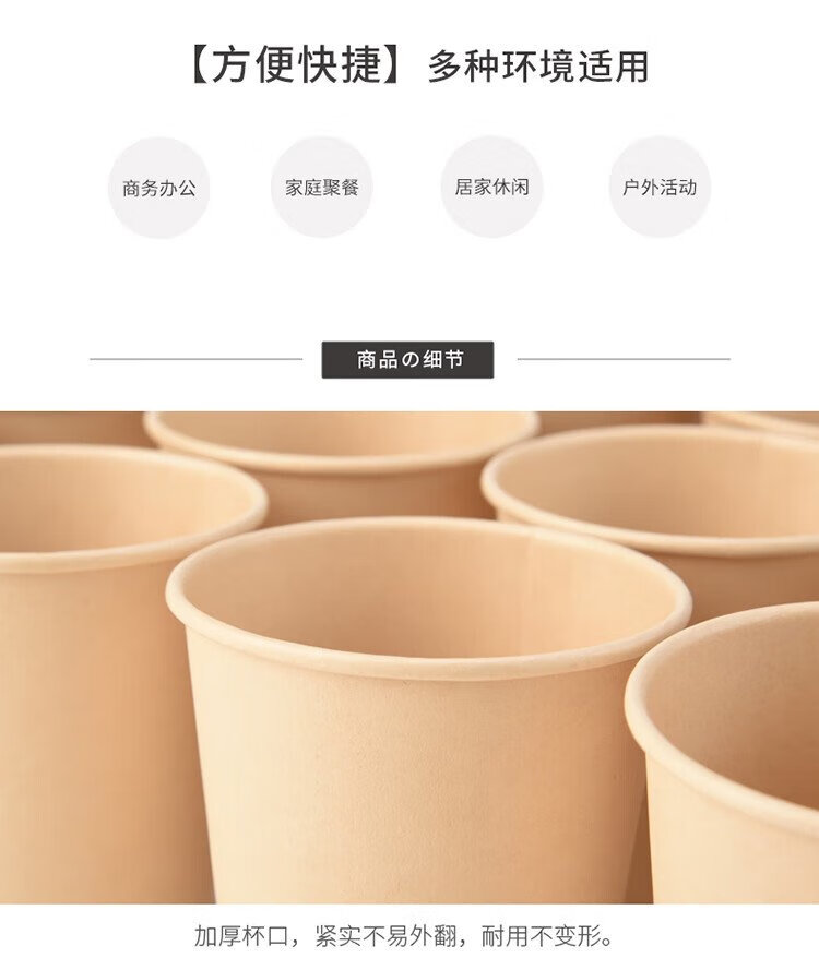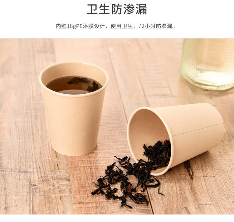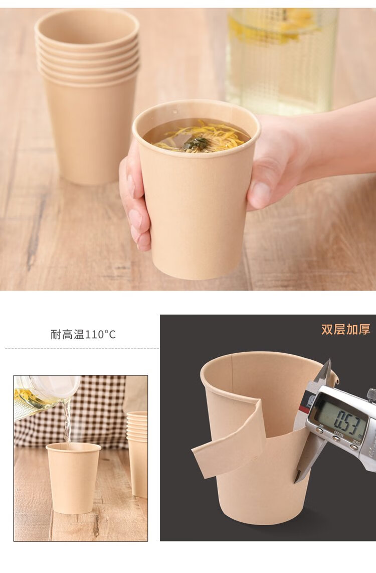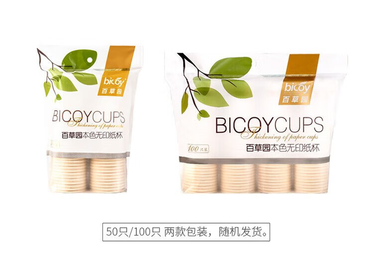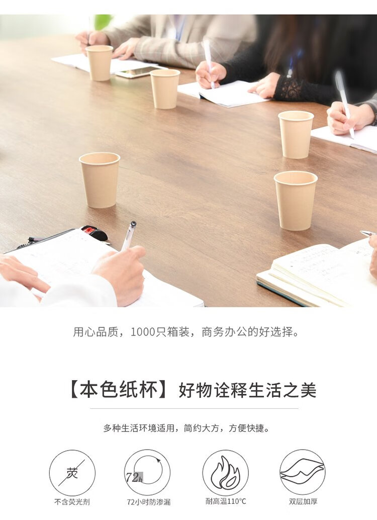 Baicaoyuan paper cup disposable cup 245ml thickened 1000 pieces whole box 9 ounces bamboo pulp natural color unprinted coffee cup water cup