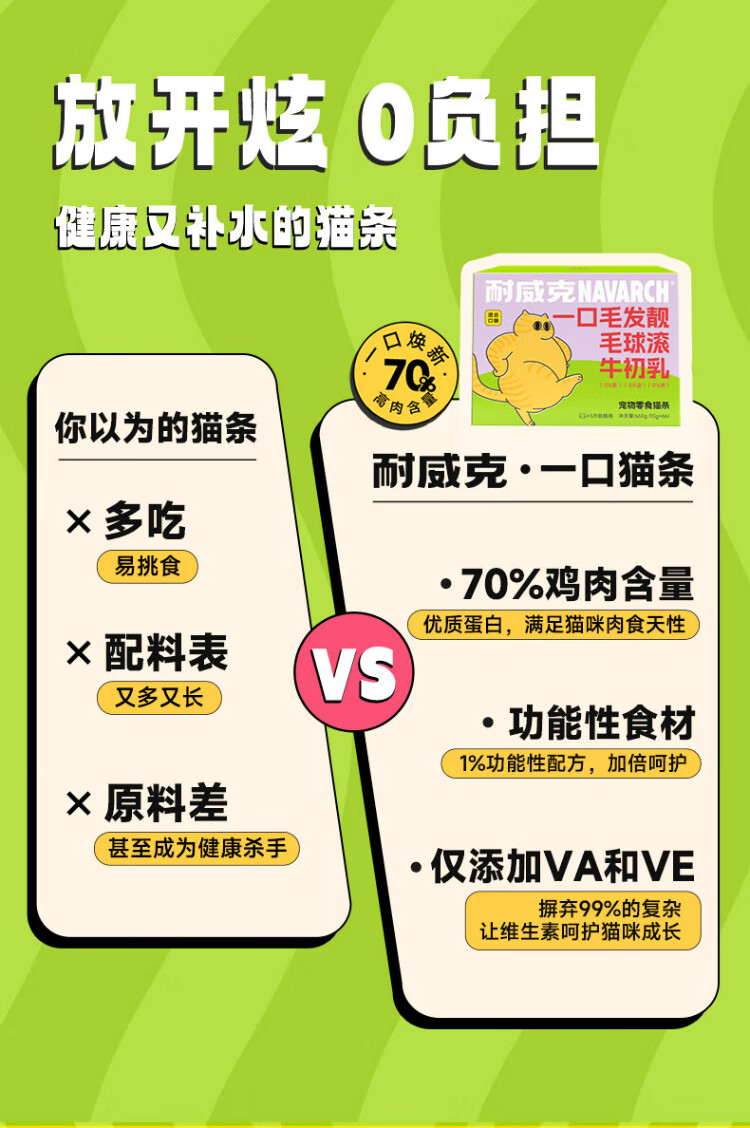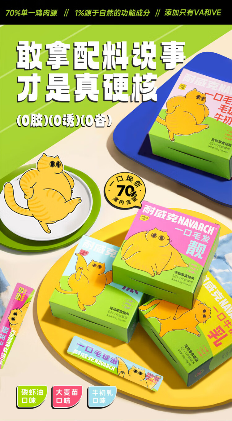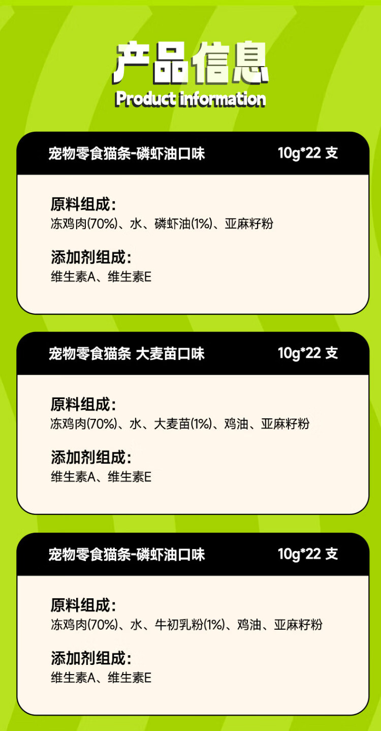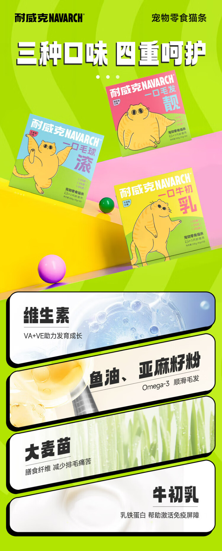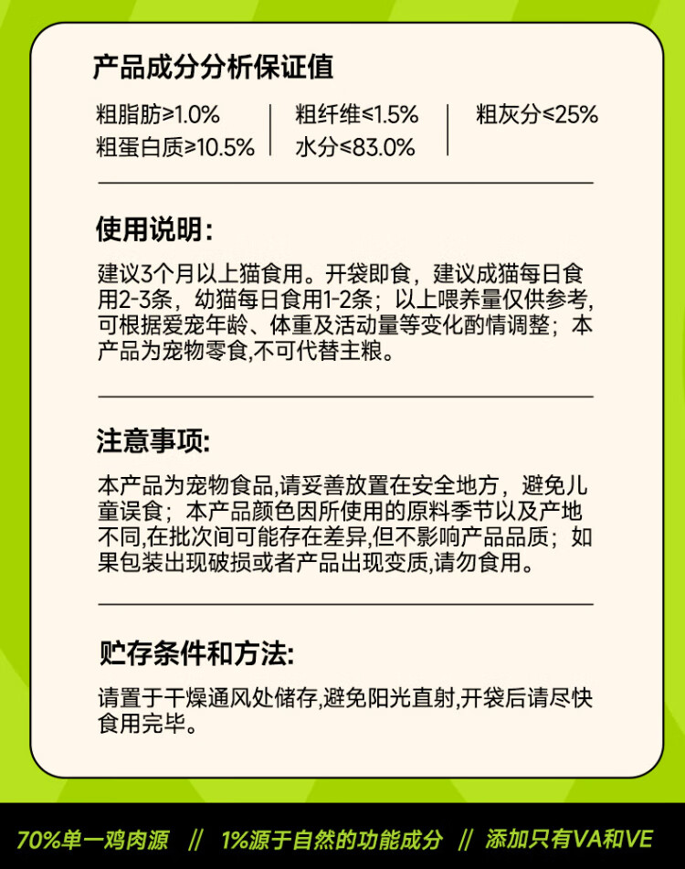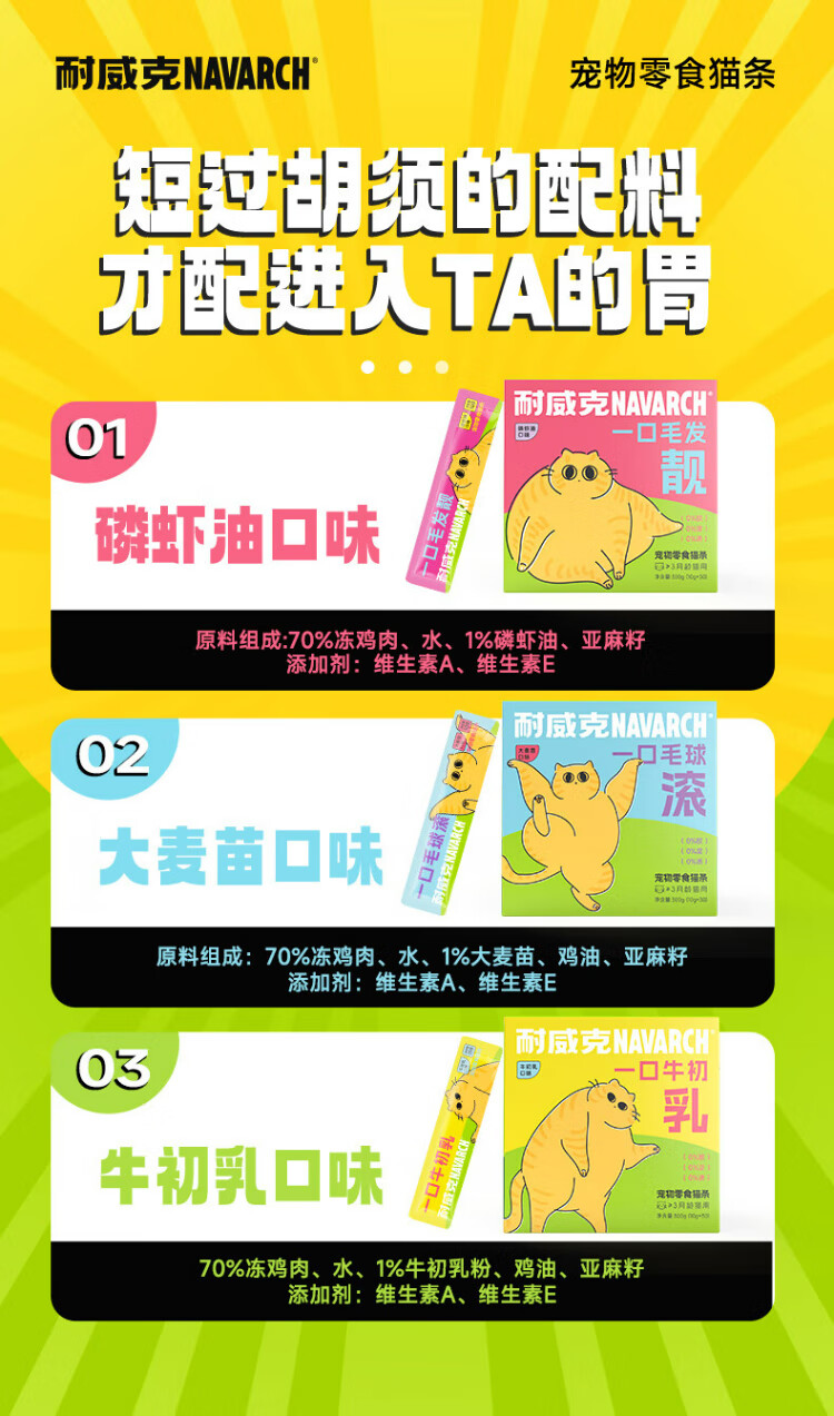 Nike Cat Strips Cat Snacks One-Bite Cat Strips for Adults and Young Cats Replenishing Moisturizing Hair Balls Chicken Barley Seedlings 10g*30 Count