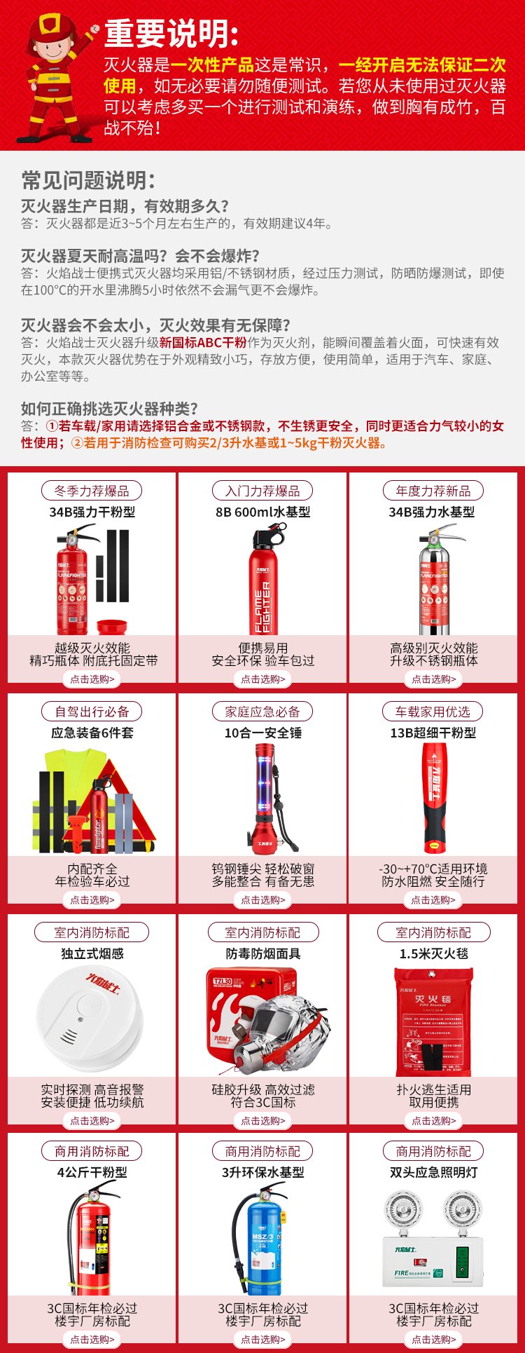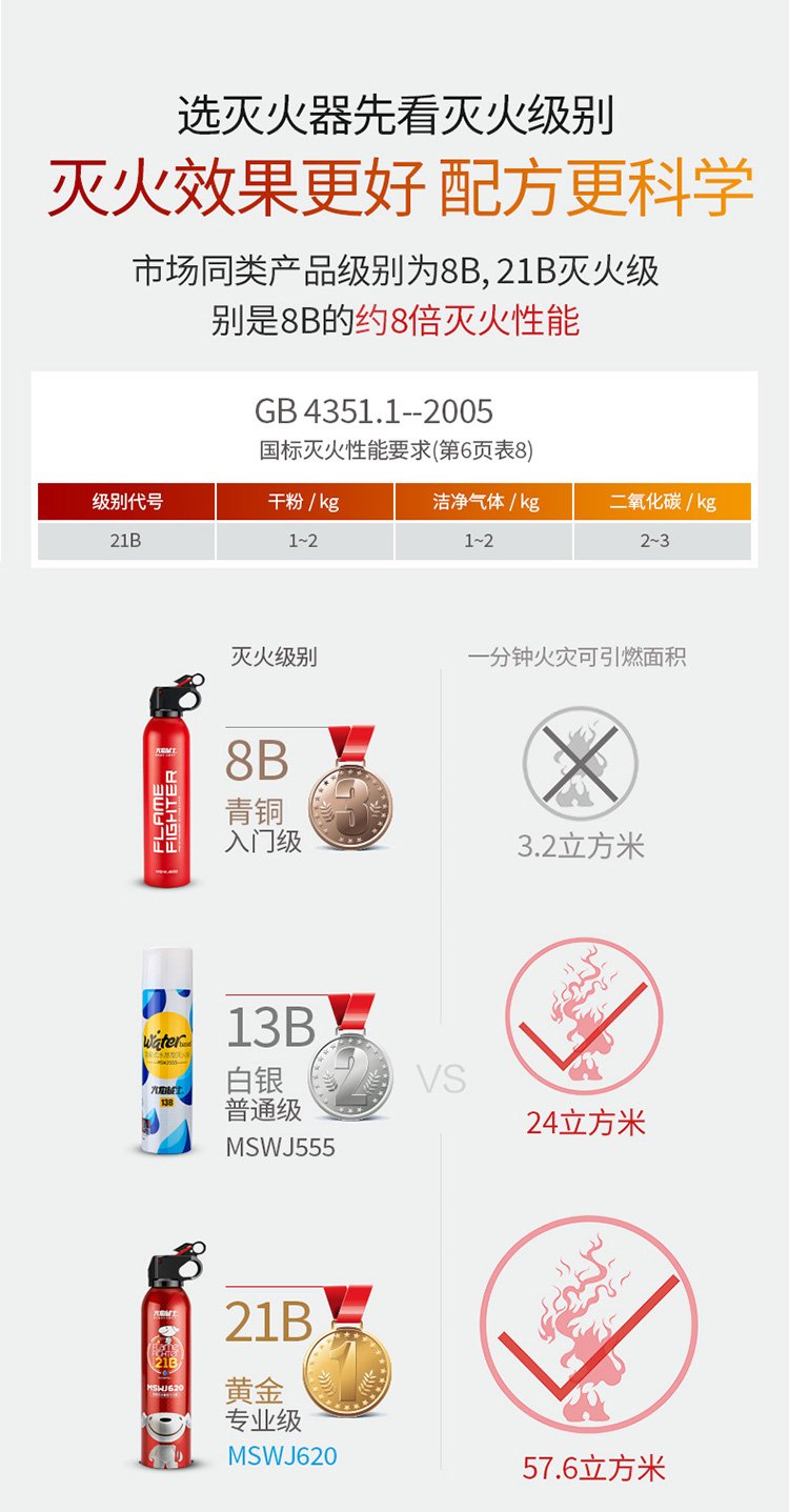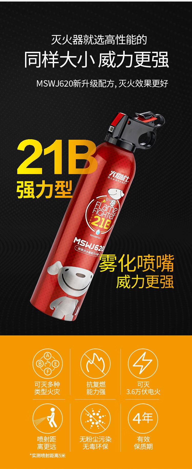 Flame Warrior vehicle-mounted fire extinguisher water-based fire extinguisher household new energy vehicle national standard fire protection 3C certification 21B environmental protection 620ml