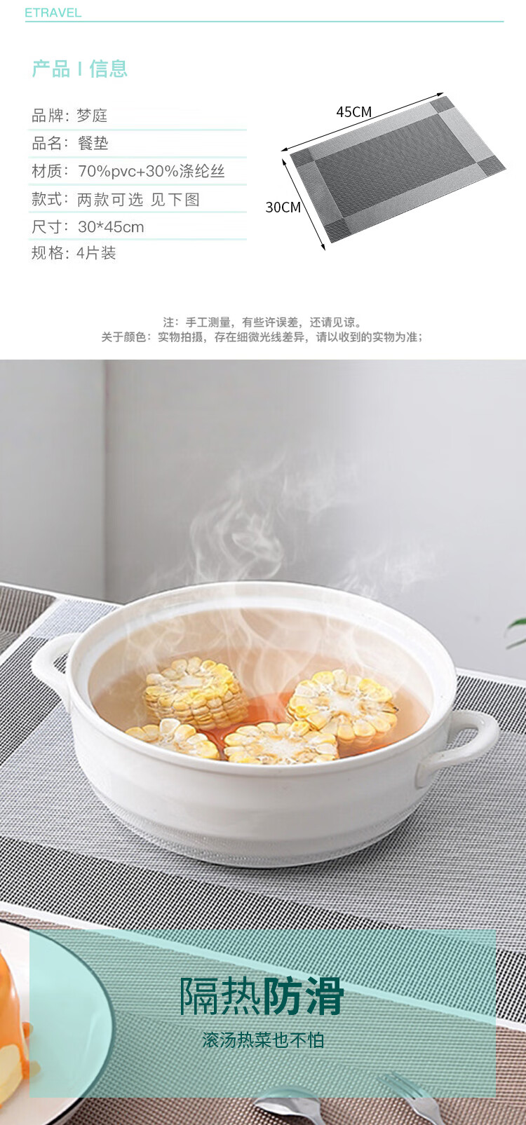 Mengting dining table mat, coffee table mat, anti-scalding mat, PVC western food mat, table mat coaster, 4 pieces 45*30cm 3034
