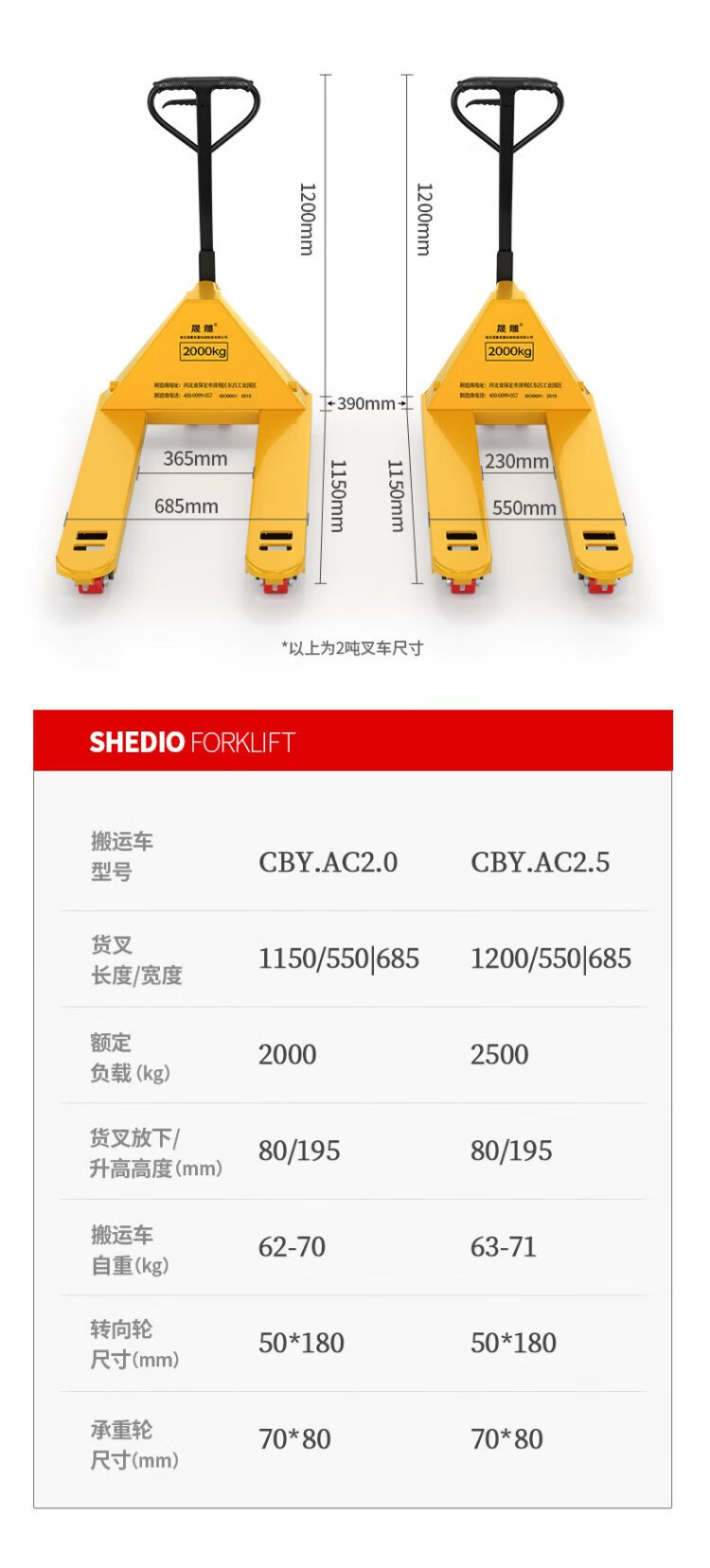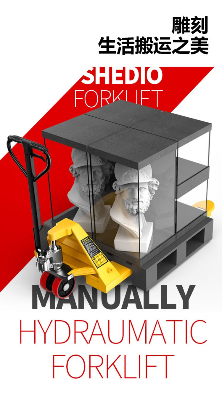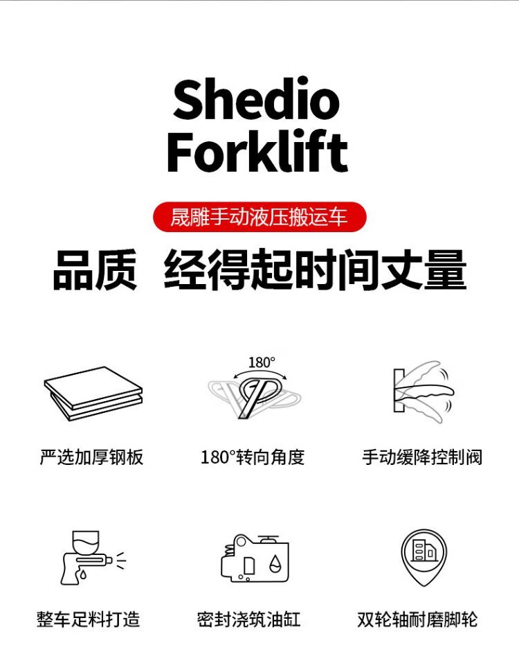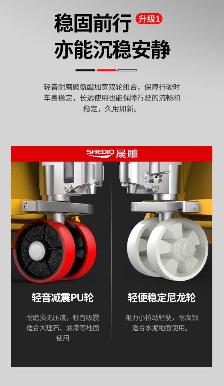 Shengdiao manual ground cow 3-ton hydraulic pallet handling forklift, outer width 685mm, fork length 1200mm, nylon wheels