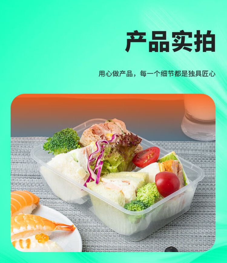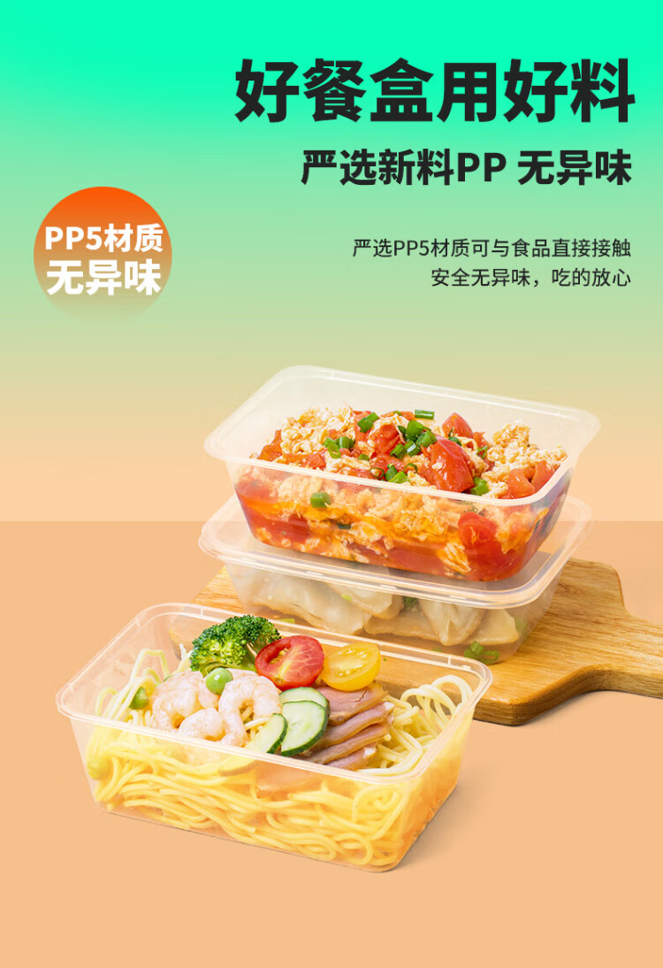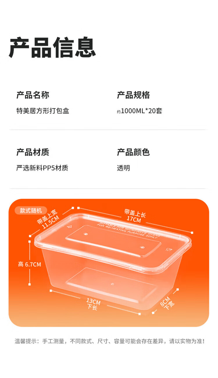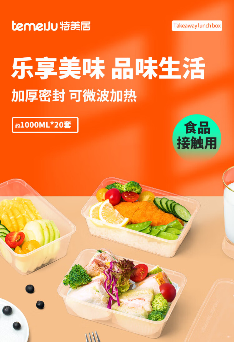 Temeiju disposable lunch box square 1000 type * 20 sets food grade packing box thickened fast food box picnic tableware with lid