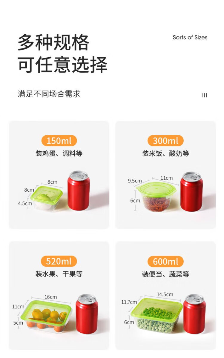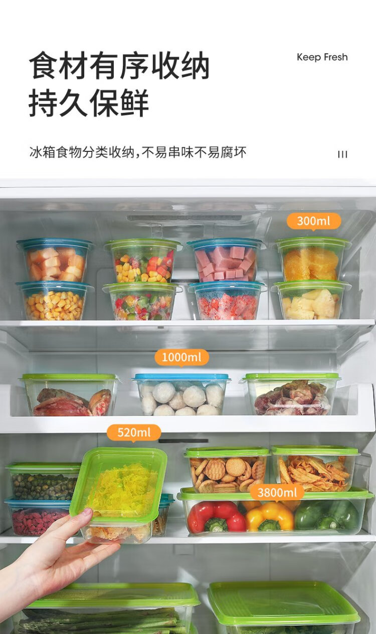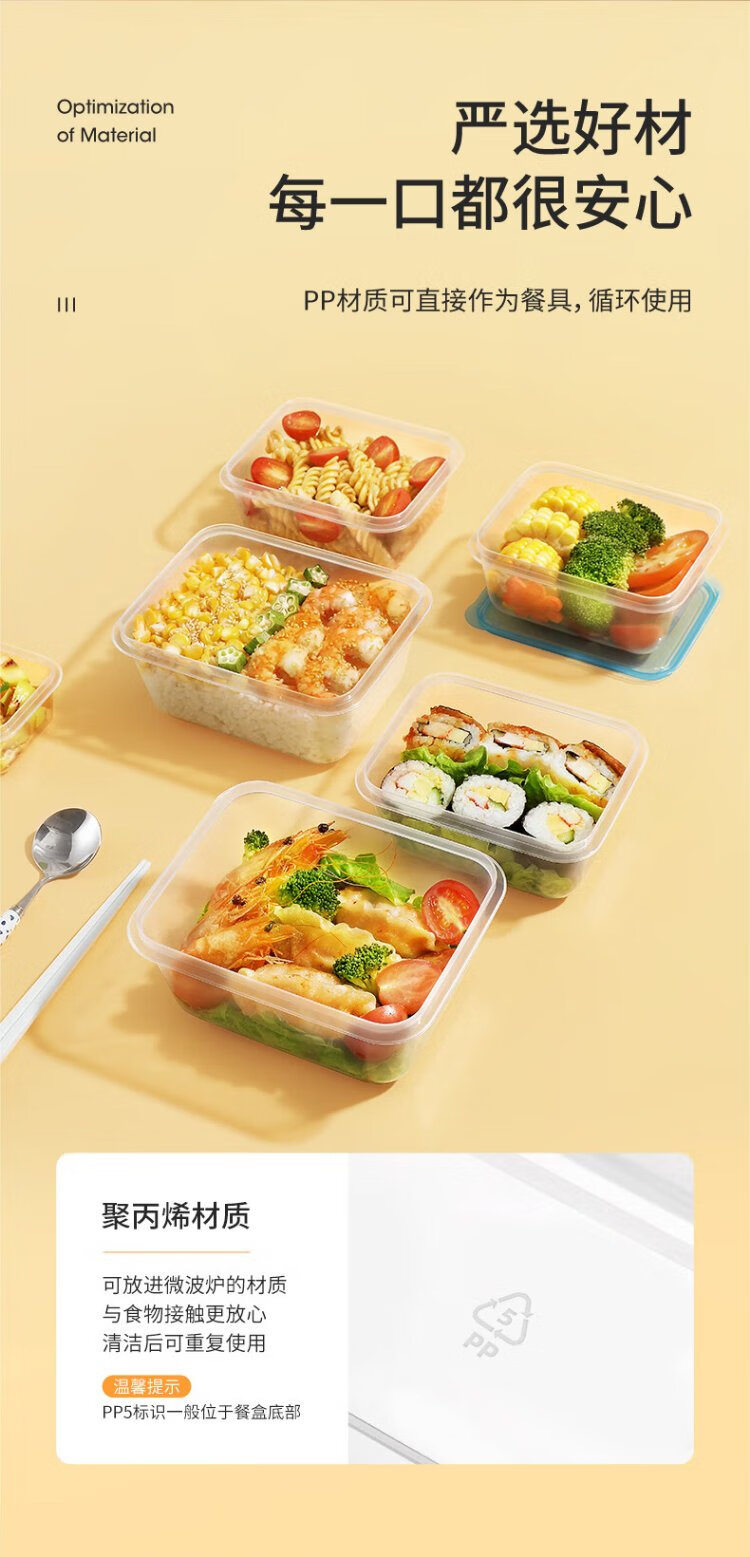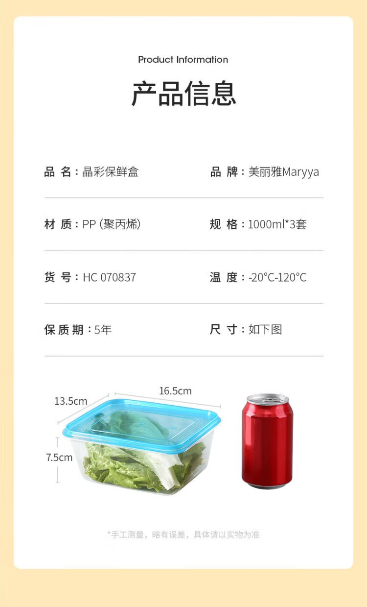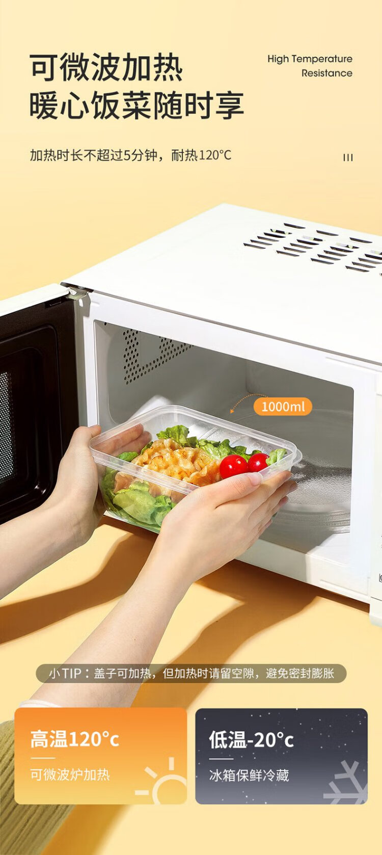 Meiya Disposable Lunch Box Square 1000ml*3 Sets Takeaway Packed Picnic Box Fresh-keeping Covered Plastic Microwaveable
