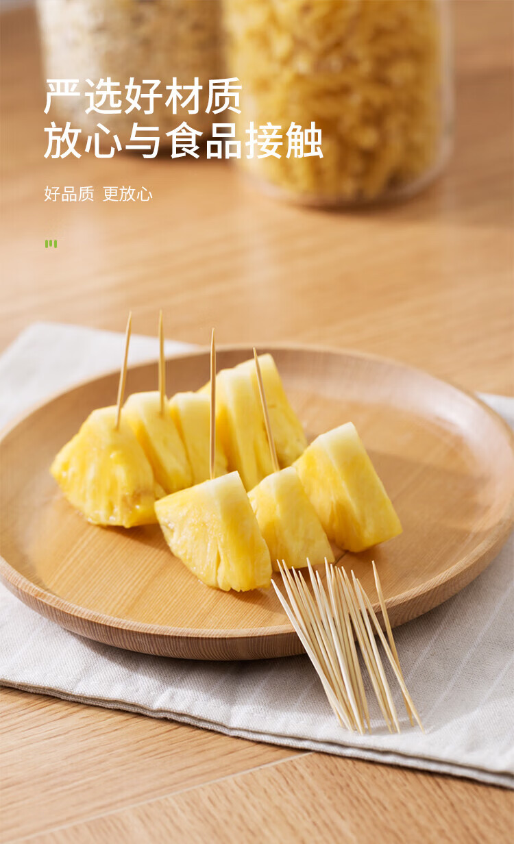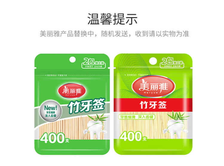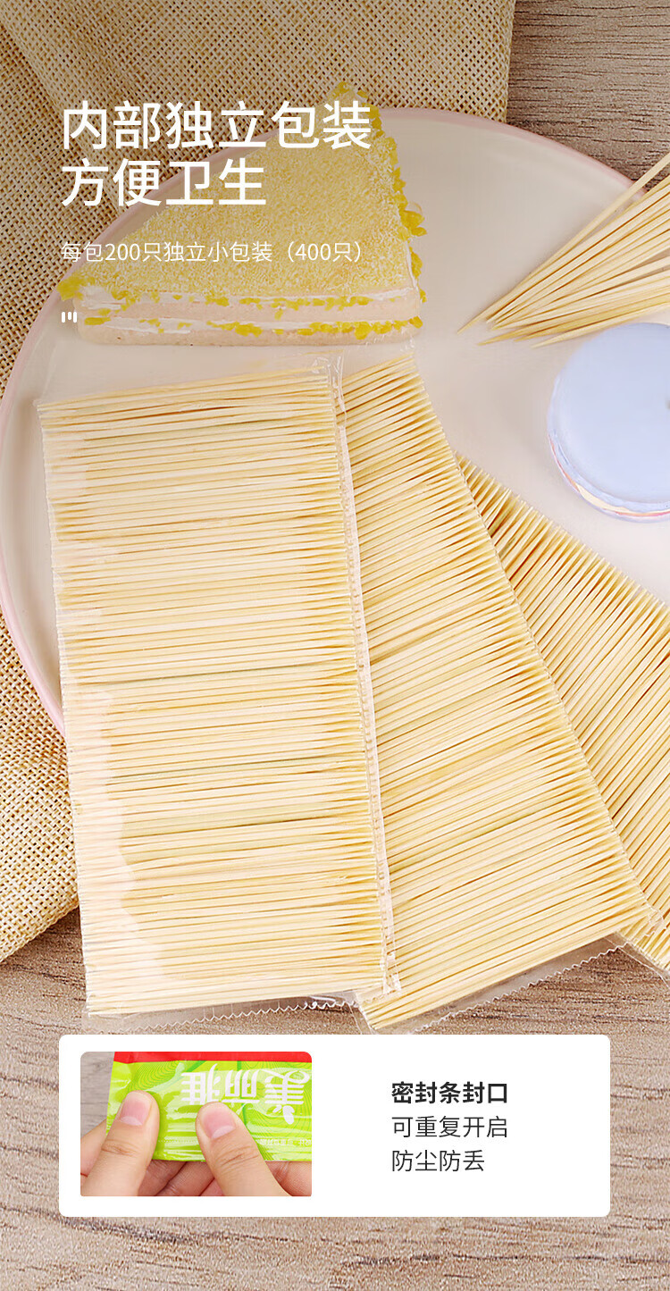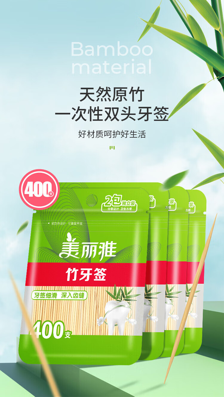Meiya toothpicks 400 pieces in bags, double-ended bamboo toothpicks, portable disposable household fruit snack picks