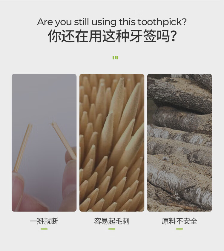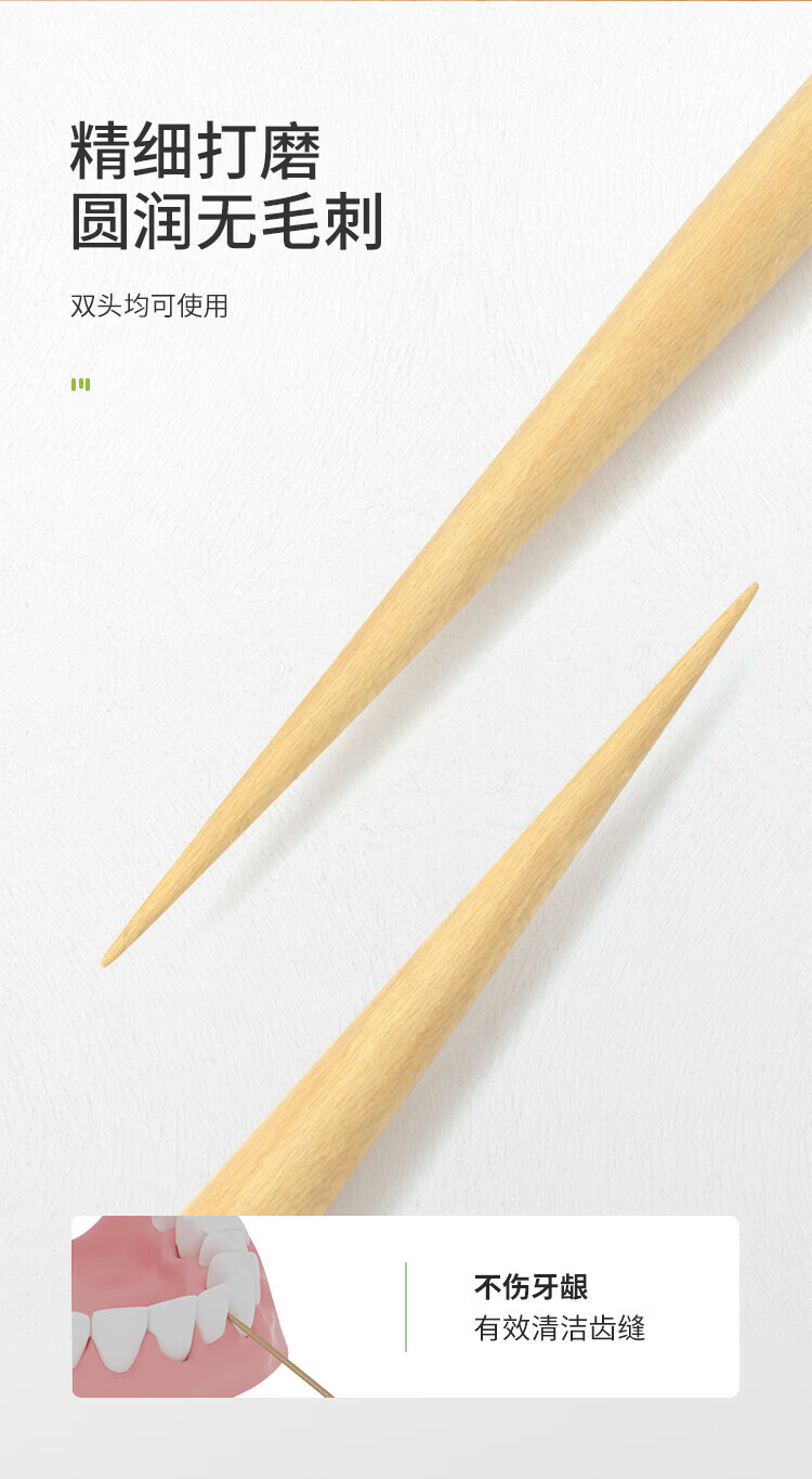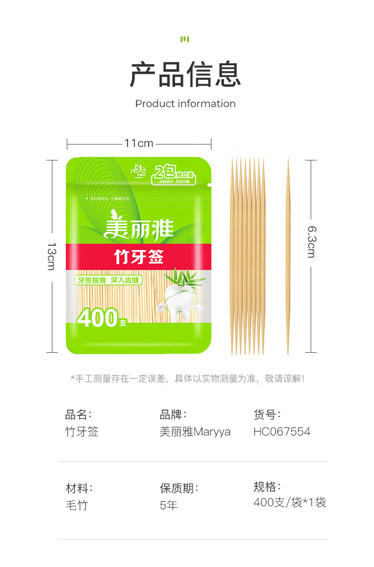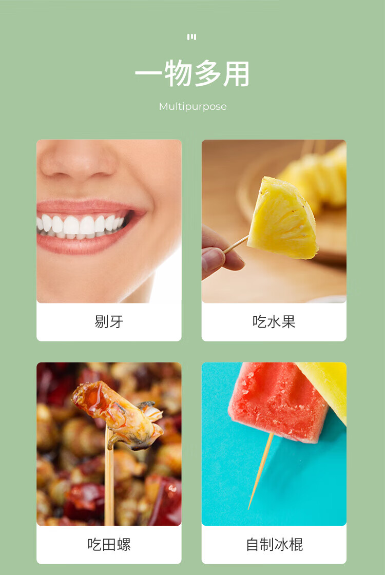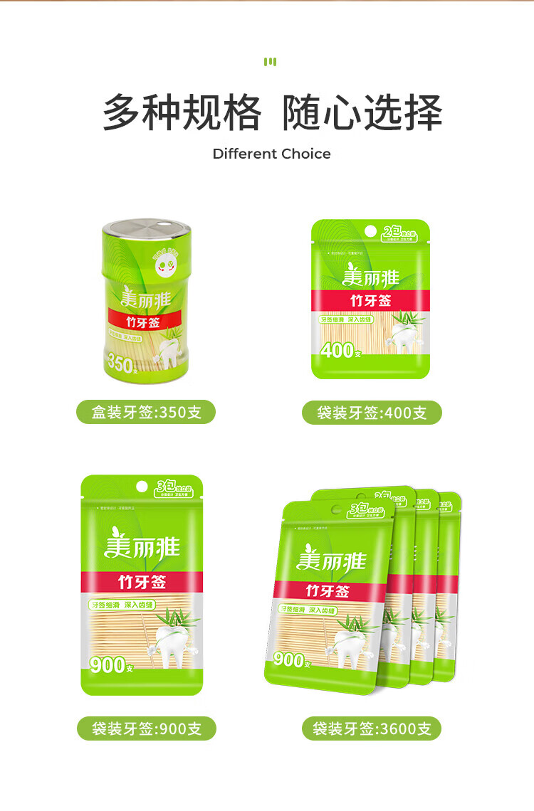 Meiya toothpicks 400 pieces in bags, double-ended bamboo toothpicks, portable disposable household fruit snack picks