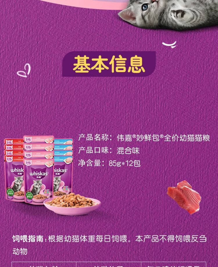 Weijia cat canned soft bag wet cat food staple food miaoxian bag kitten cat food staple food miaoxian bag 85g*12 mixed flavor
