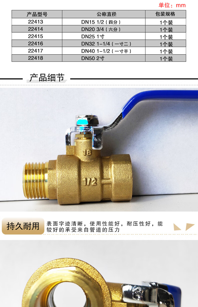 Ansery internal and external threaded brass ball valve national standard internal and external threaded ball valve switch DN20 6 points 22414