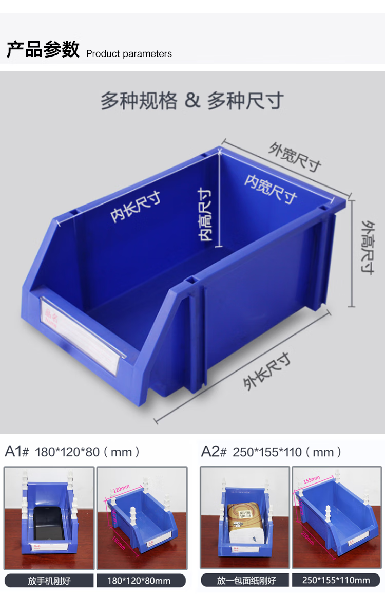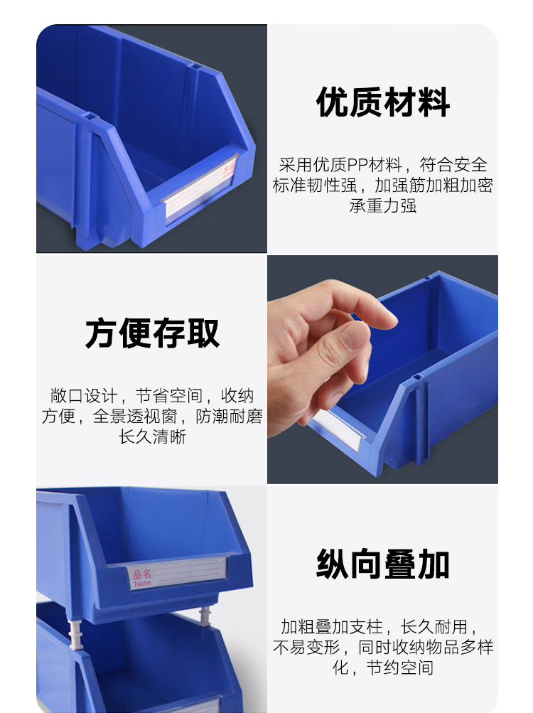 Wenstan WST014 parts box plastic combined parts box material box warehouse storage box screw box tool box oblique mouth blue 600*400*220mm customized