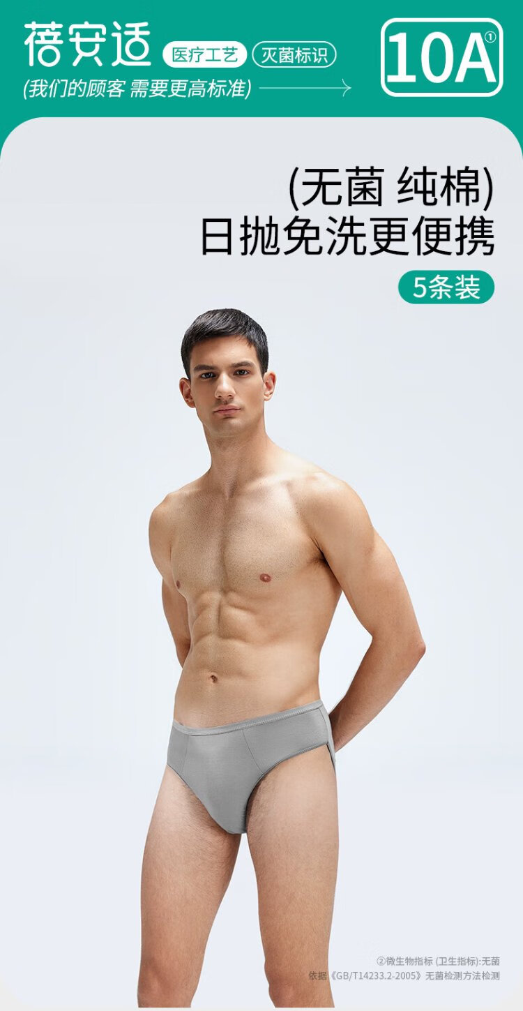 Beianshi Disposable Underwear Men's Pure Cotton Travel Portable Independently Packaged Disposable Shorts Men's Gray 5 Pack 3XL