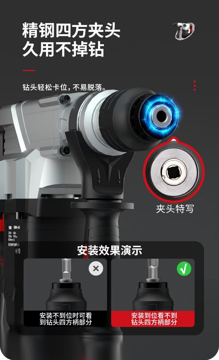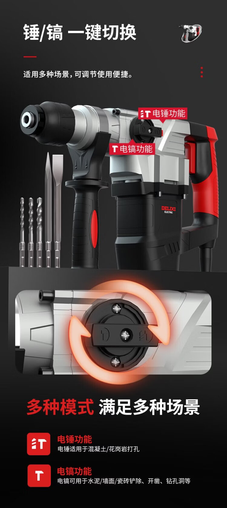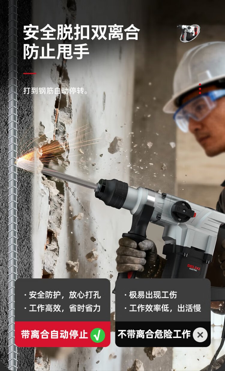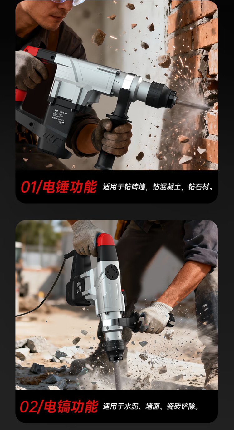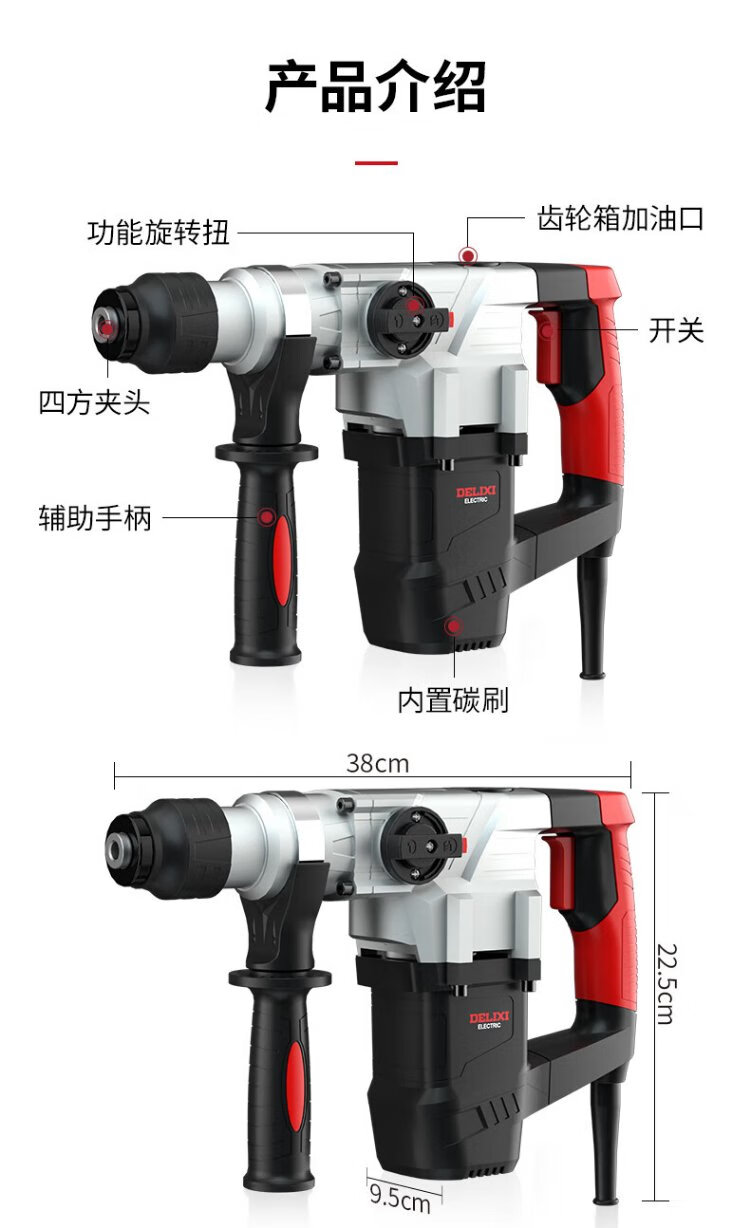 Delixi Electric Electric Hammer Electric Pickaxe Drill Multifunctional Impact Drill Household High Power Concrete Industrial Grade Electric Pickaxe 1050W