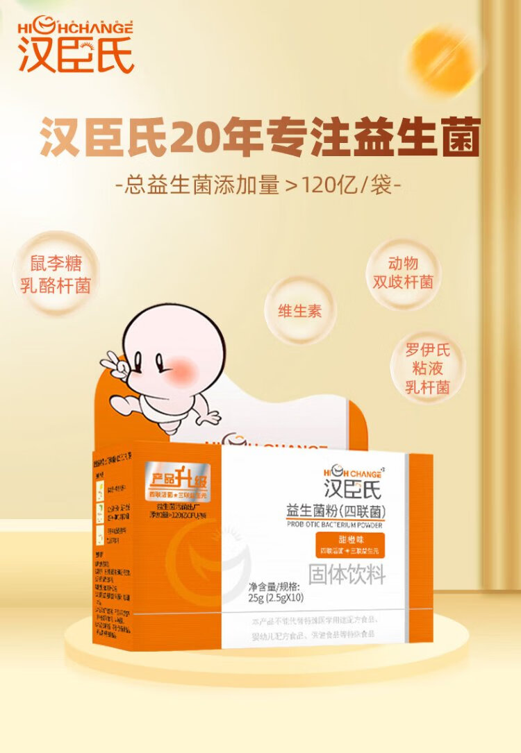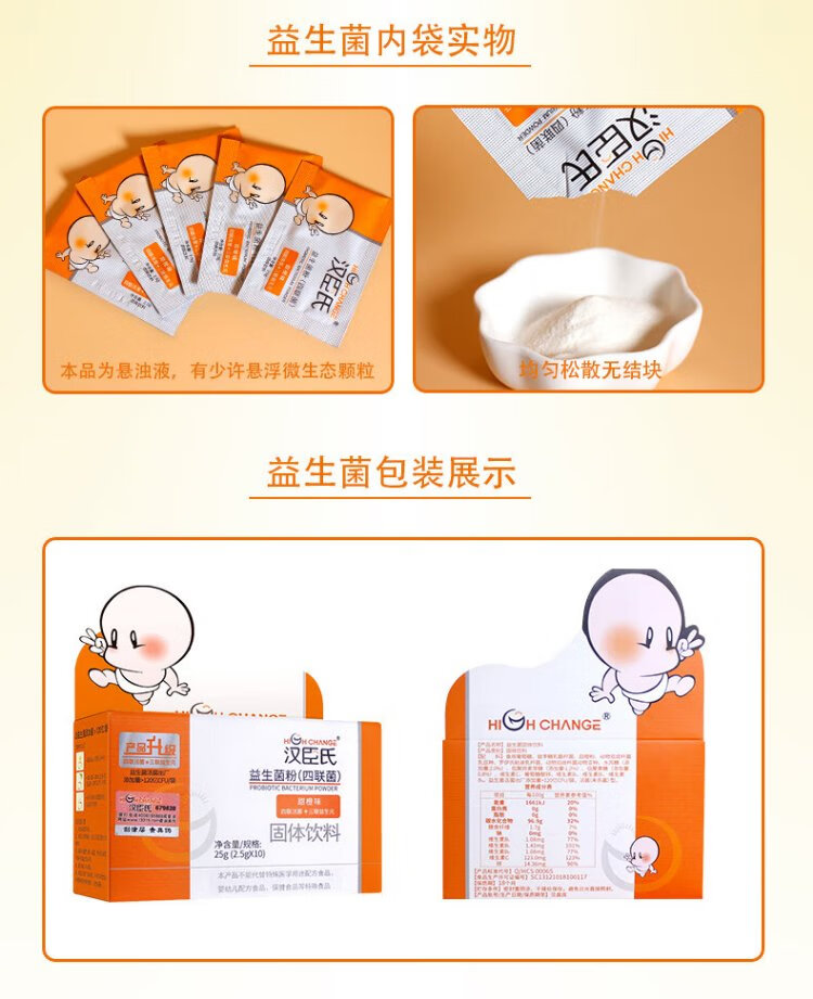Hanchen's Quadruple Probiotic Powder 0 Protein 0 Milk Powder Baby Children's Intestinal Health 10 Bags
